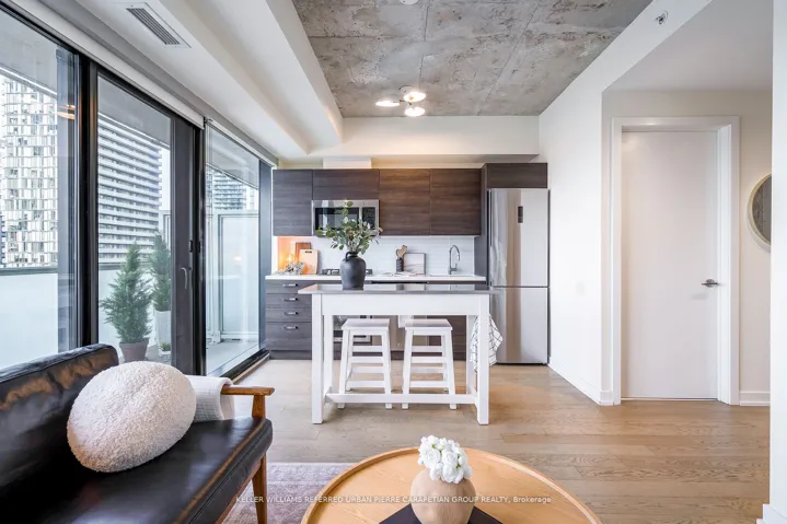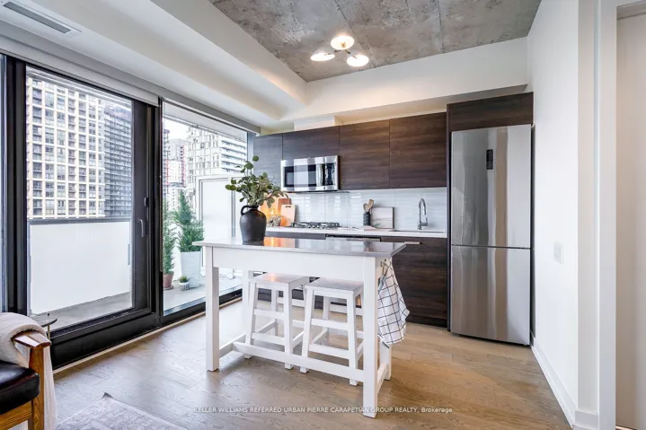 Welcome to the best of downtown – 11 Charlotte – the other units won’t compare to this one! A perfectly laid out one bedroom suite with massive north facing terrace with unobstructed city views and gas line – fabulous for entertaining! The unit is filled with floor to ceiling with floor to ceiling windows creating a spacious feel despite its size. Exposed concrete walls and ceilings set it apart from the cookie cutter units of Toronto. Unlike others, the bedroom has floor to ceiling windows, large closet as well as a spot for your desk. The unit has been cared for and owner occupied for years.Beautifully designed European style kitchen with island and updated lighting.Amenities include a rooftop pool and party room, fitness centre & bike storage. The unit also comes with its own locker.Charlotte is a quiet street, but blocks away from Torontos best restaurants, nightlife and shopping. Two blocks from queen west and steps to king west (including the king west street car). Easy access to the QEW.. Move right in and enjoy 🙂