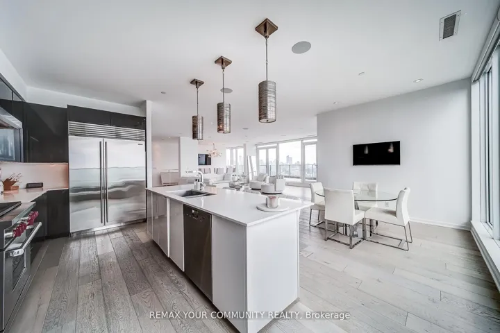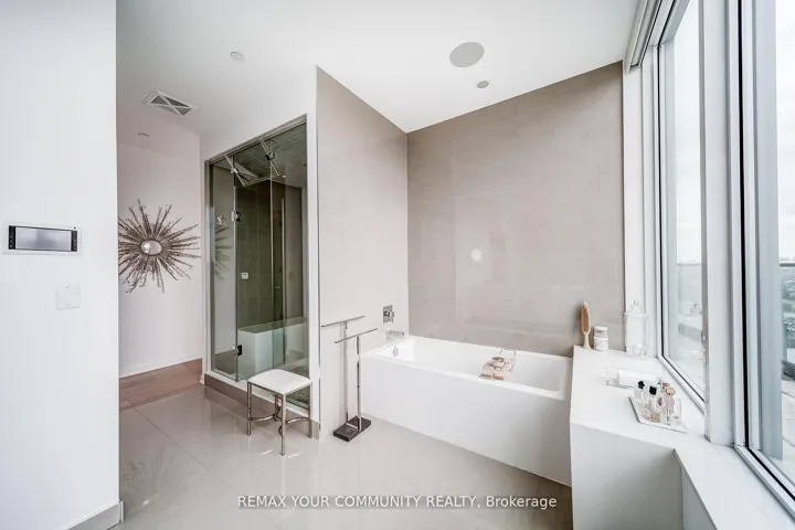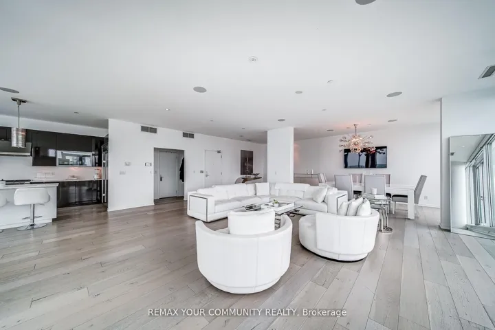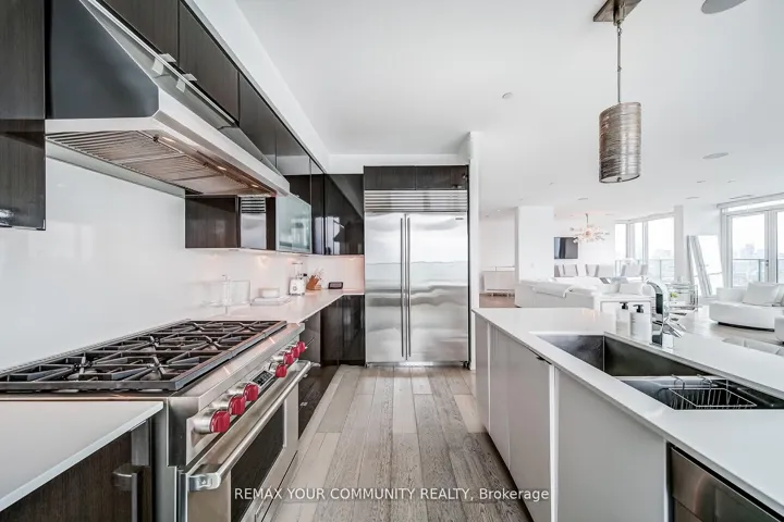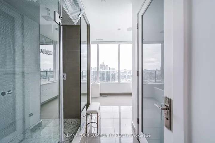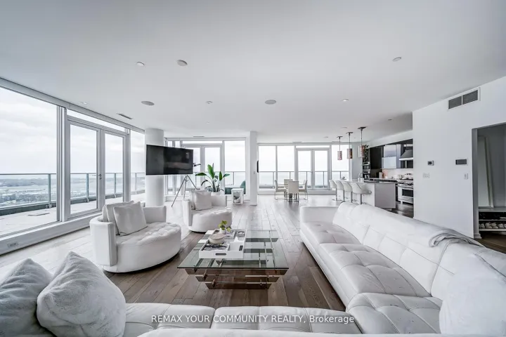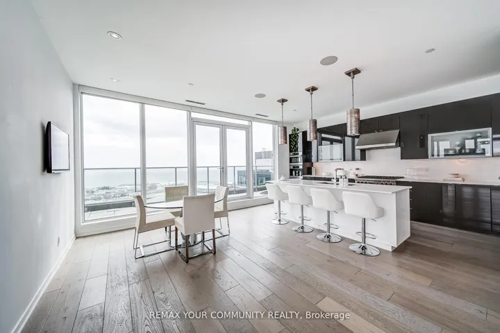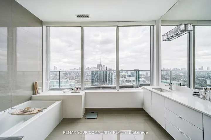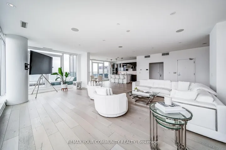 Welcome to a truly exceptional penthouse residence in the heart of Liberty Village. Spanning an impressive 2,694 square feet, this one-of-a-kind home is being offered for the first time by the original owner. Thoughtfully customized in collaboration with the builder, this residence delivers a rare opportunity to own a property of this caliber. Designed with entertaining in mind, the expansive open concept layout seamlessly blends the living, dining, breakfast, and chef’s kitchen into one breathtaking space, featuring multiple walkouts to your private wraparound terrace with gas BBQ line. Floor to ceiling windows wrap the unit, showcasing spectacular 270 degree views to the North, South, and East. Enjoy uninterrupted vistas of Lake Ontario, the Toronto skyline, the CN Tower, Billy Bishop Airport, and BMO Field, home to upcoming FIFA World Cup matches. This luxurious penthouse features 2 plus 1 bedrooms and 3 beautifully appointed bathrooms. The primary suite is a private retreat, offering a spa inspired 5 piece ensuite with steam shower, three walk in closets, and direct access to the wraparound terrace. Wake up to iconic CN Tower views from the comfort of your own sanctuary. A spacious separate office provides the perfect work from home environment, while the second bedroom includes its own walk in closet and private 3 piece ensuite, ideal for guests or family. Additional highlights include two private entrances, two owned underground parking spaces, and two lockers conveniently located on the same floor. This is a rare offering that combines scale, customization, and iconic views in one unforgettable residence. A true showpiece for the most discerning buyer.