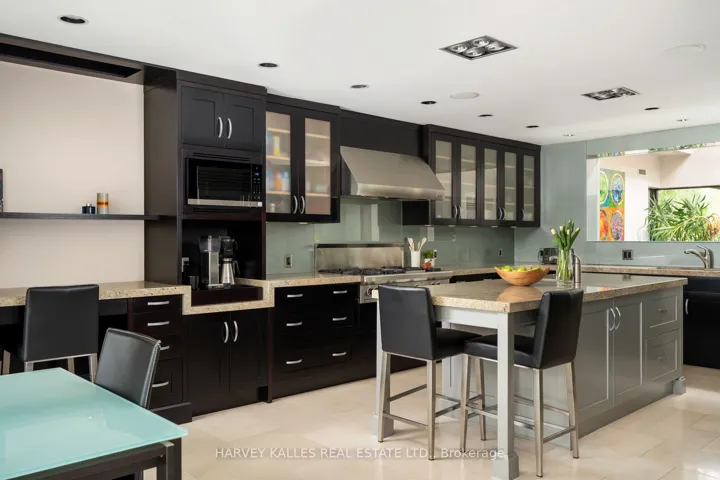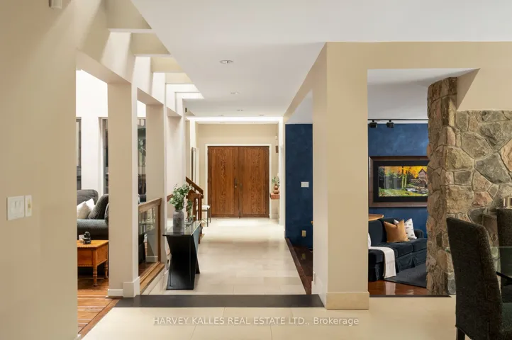 Part mid-century masterpiece, part urban treehouse. This 6,652-square-foot custom home offers a rare combination of grand scale and organic intimacy. Defined by dramatic walls of glass found throughout the house, this residence invites the surrounding canopy indoors, framing a private outdoor oasis complete with a kidney-shaped pool and putting green. The interior is anchored by a stunning granite stone feature column that separates the step-down living room and formal dining room, complete with a fireplace accessible from the living area. Bathed in an abundance of natural light, the home features a glassed-in sunroom/conservatory with soaring 16’7″ ceiling. Situated within the prestigious Denlow School catchment area, this 5+1 bedroom, 6-bathroom residence offers a rare combination of bold geometric character and generous proportions; truly designed for both recreation and relaxation>