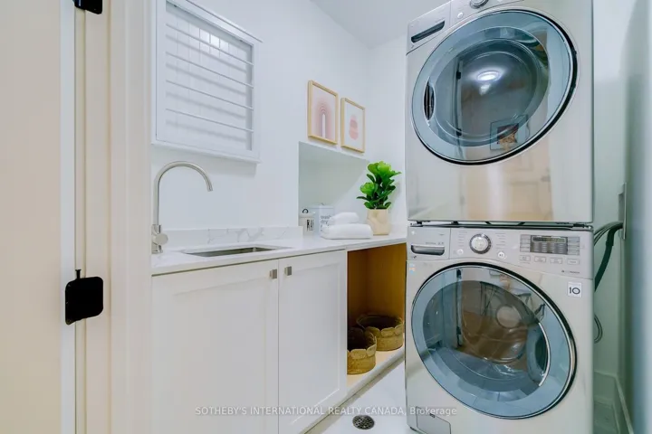 A rare Certified Passive Home in Queen West, this modern masterpiece is designed for both style and sustainability. Purpose-built to meet rigorous energy-efficiency standards, this ultra-low-cost home offers over 3,000 sq ft of above-ground living space, where sleek finishes and thoughtful details define an elevated urban lifestyle. The main floor welcomes you to a bright, open-concept layout featuring wide-plank hardwood floors, a statement staircase with glass railings, custom oak cabinetry, and designer LED lighting throughout. The chef’s kitchen is a true showstopper complete with integrated high-end appliances, stone countertops, dramatic backsplash, and an oversized island with seating. The adjoining family room offers a seamless indoor-outdoor connection with a walkout to the private back patio. Upstairs, soaring 9ft ceilings enhance the sense of space and light. The serene primary suite features a walk-through closet with built-ins, a spa-like 4-pc ensuite, and large windows overlooking a private terrace. This level also includes a second bedroom with its own ensuite and a full laundry room. The third floor offers a stunning secondary primary retreat with a luxurious 5-pc ensuite featuring a soaker tub, extensive closet space, and direct access to a private rooftop deck. An additional large bedroom with generous storage completes this level. Bathrooms throughout are finished with premium fixtures by Gessi, Toto, and Nobili, complemented by floating vanities and wall-hung toilets. The lower level, with separate entrance, offers a spacious living and dining area, a 4-piece bath, and a generous bedroom-ideal for an in-law, guest, or nanny suite. A detached two-car garage wired for an EV charger and a rooftop terrace further enhance the outdoor lifestyle. Steps to the shops, cafes, and restaurants of Queen West and Ossington, and minutes to the future King-Liberty GO Station, this exceptional home delivers a rare blend of luxury, and urban convenience.