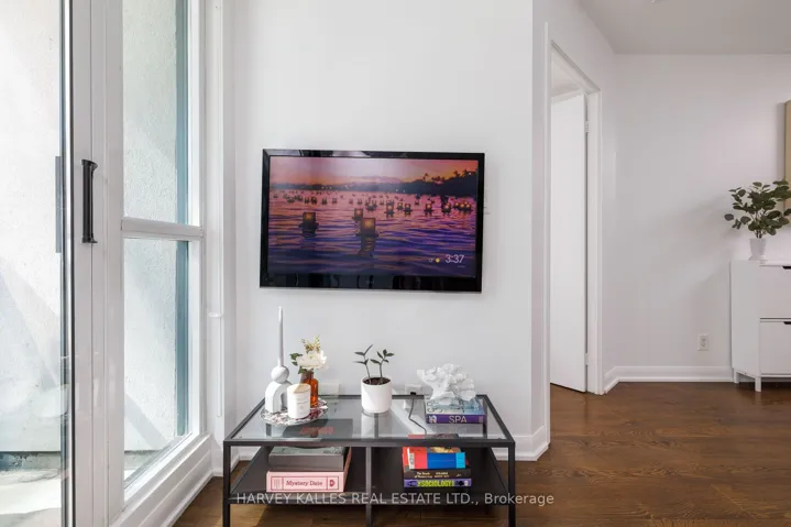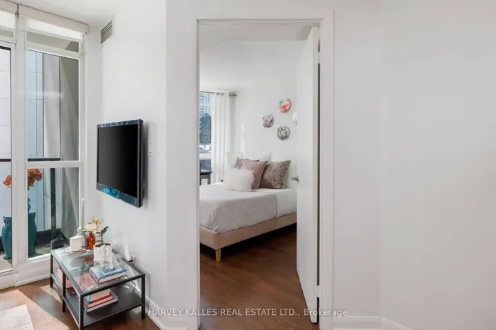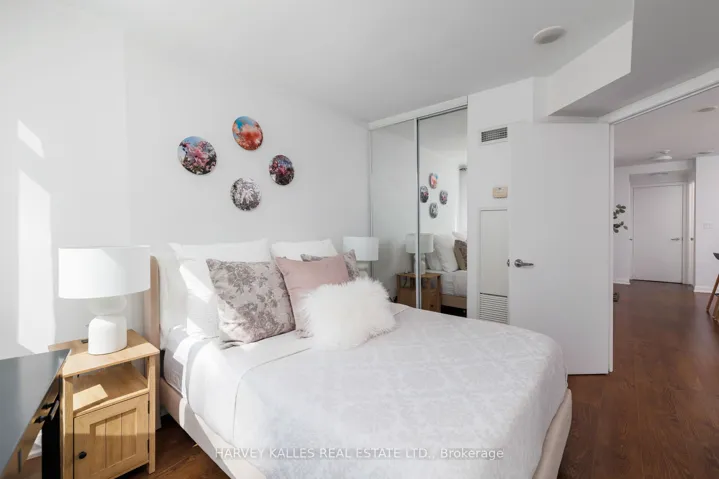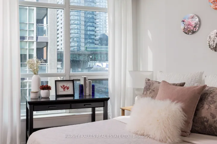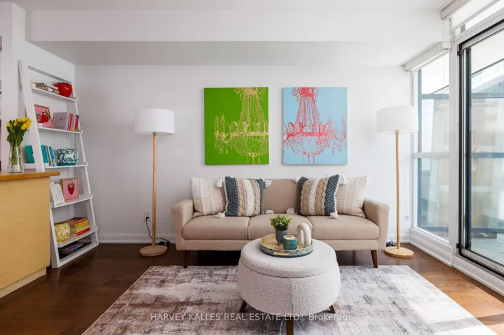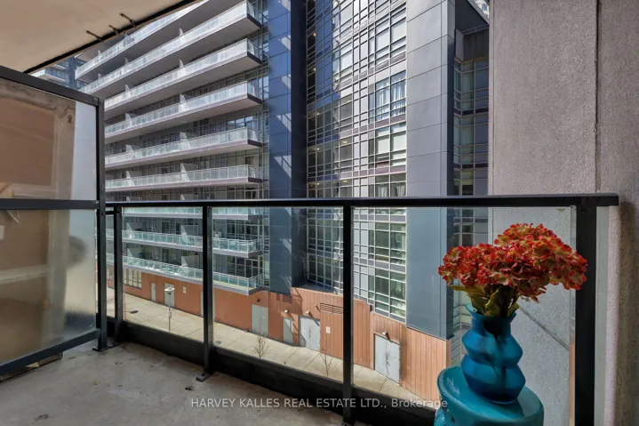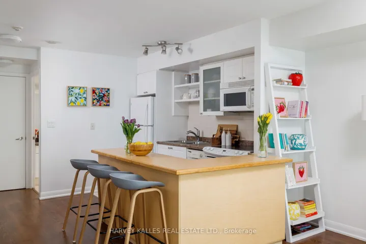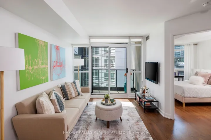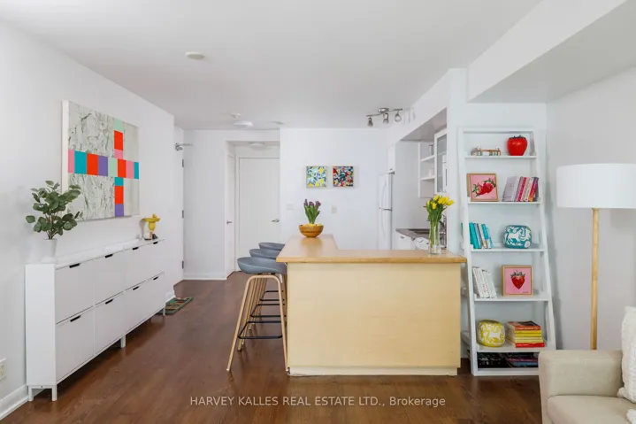 A sophisticated urban retreat in the heart of the historic Fort York district. This thoughtfully curated one bedrom with balcony offers 553 sq ft of living space, a seamless blend of modern functionality and quiet comfort. This open concept layout is anchored by a kitchen featuring a central island, crisp white cabinetry, and a tile backsplash, ideal for both morning coffee and evening entertaining. Sun-filled interiors and wood flooring lead from the living area to a private balcony, offering a natural extension of your living space. The bedroom serves as a serene sanctuary with integrated storage, while the four piece bathroom and ensuite laundry ensure effortless daily living. Beyond the suite, enjoy a lifestyle of convenience with premium amenities including 24 hour concierge, indoor pool, gym, and an expansive rooftop garden. Situated steps from waterfront trails, Loblaws, and the energy of King West, Unit 401 is more that a condo, it is a connection to the best the city has to offer. Includes one dedicated parking space for added convenience.