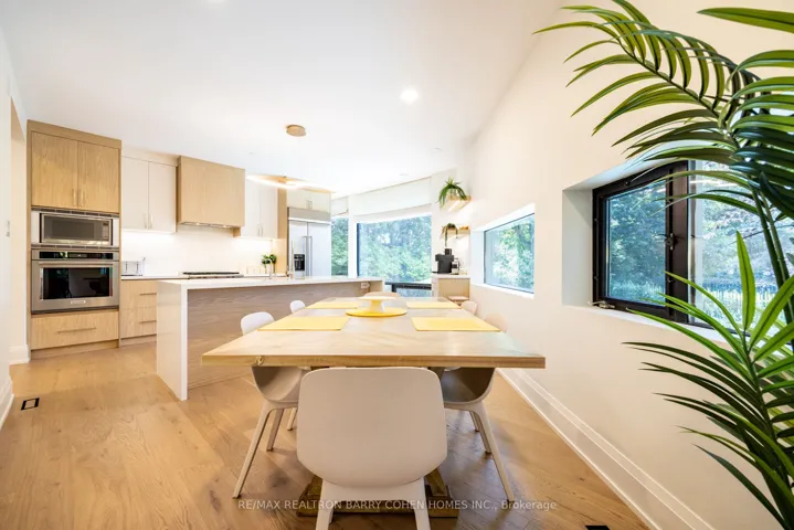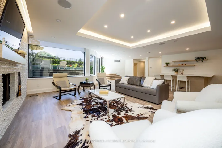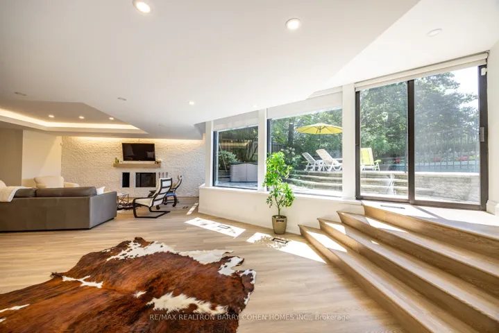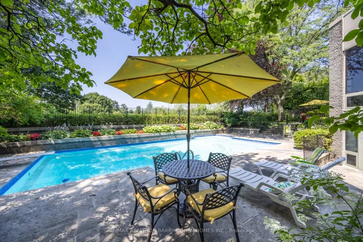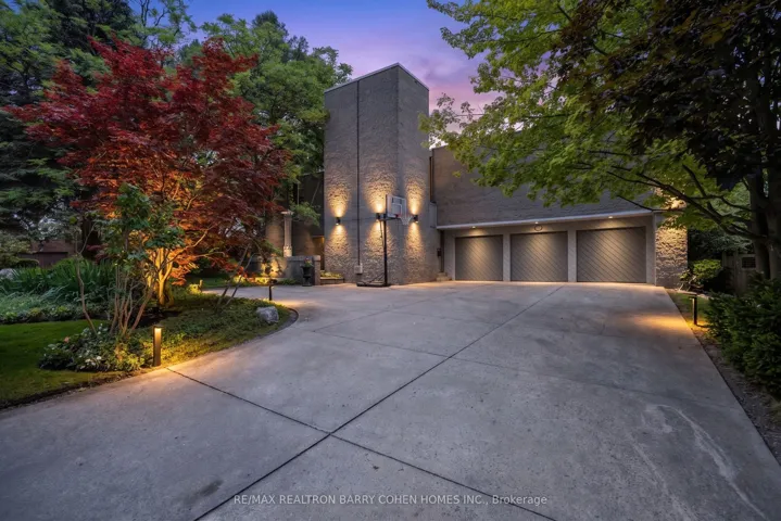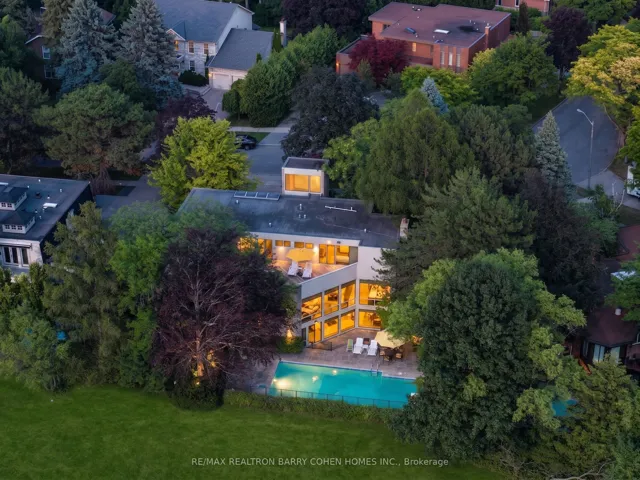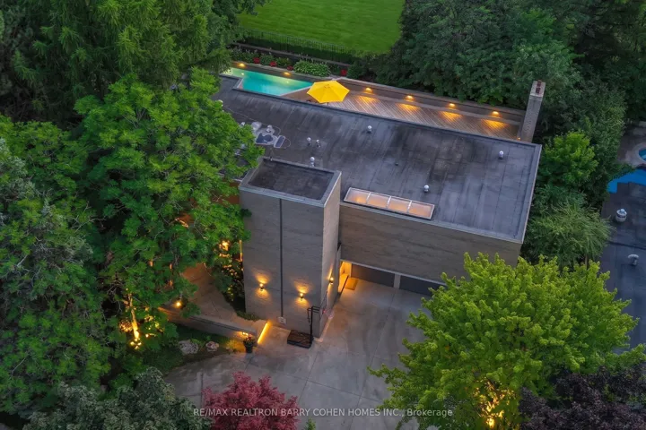 An iconic showcase of refined design, upgraded and perfectly positioned in the prestigious Windfields neighbourhood, this exceptional residence offers unparalleled privacy and a seamless connection to the natural beauty of Windfields Park. Bold Brutalist architecture creates a dramatic, light-filled interior with floor-to-ceiling picture windows on every level, adorned with custom Belgian linen window coverings. An expansive second-floor sundeck provides sweeping park views and is accessible from all four bedrooms, while the lower level opens effortlessly to lush rear gardens. The main floor is designed for elegant entertaining, featuring formal living and dining areas, a sunken family room, a chef’s kitchen with servery, and walk-outs to a flagstone patio and shimmering concrete pool. A sculptural open-riser staircase enhances the flow of natural light throughout the home. The lower level offers a luxurious retreat with a fifth bedroom, wet bar, recreation room with wood-burning fireplace, sauna, and floor-to-ceiling garden views with walk-up access to the patio. A three-car garage and circular driveway accommodating 8+ vehicles provide ultimate convenience, while proximity to top schools, 401/404/DVP, and the exclusive Granite Club ensure unparalleled lifestyle ease. A rare urban sanctuary, this home combines dramatic design, refined luxury, and a serene parkside setting for a truly extraordinary living experience.