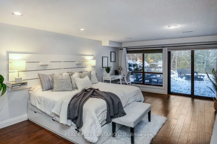 Set amongst mature trees, on approximately 6.17 acres, in an executive Burketon neighbourhood, this stunning raised bungalow offers a rare blend of privacy, character, and craftsmanship. The property welcomes you with a large paved driveway leading to a 3-car attached garage with interior access, plus a detached approx 15ft x 30 ft workshop with hydro – perfect for hobbyists or extra storage. Beautiful landscaping surrounds the home, featuring walkways, fountains, armour stone accents, multiple patio areas ideal for relaxing or entertaining and groomed trails for leisurely strolls through the trees. Enjoy the peaceful sounds of nature from the expansive deck overlooking the private yard. Inside, this home is rich in charm and design detail. The kitchen boasts quartz counters, a moveable centre island, built-in appliances, and a convenient walk-in pantry. The dining room features a walk-out to the deck and shares a striking, two-way wood-burning fireplace with the sunken living room. Here, large windows, a vaulted ceiling, and a floor-to-ceiling stone fireplace creates a warm, inviting atmosphere filled with natural light.The main floor hosts two generous sized bedrooms. The luxurious primary retreat boasts a walk-in closet and a spa-inspired ensuite, features heated floors, a soaker tub, and a tiled walk-in shower. The fully finished, walk-out basement offers exceptional living space with large windows that make it bright and welcoming. It includes two additional bedrooms (one with two closets, and the other with a walk-out to the yard and a woodstove), a 4-piece bath, a dining area and an open concept living space that overlooks the kitchenette. This area has ample cabinetry, quartz counters as well as a custom cherry wood wet-bar. This one-of-a-kind property seamlessly combines elegance, comfort, and natural beauty, truly a place to call home.
