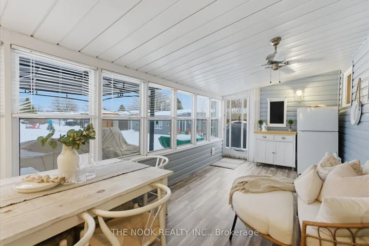 Welcome to 1 Steelhead Lane, nestled in the highly sought-after Wilmot Creek Adult Lifestyle Community in Newcastle, a vibrant senior living resort along the shores of Lake Ontario. This bright and inviting home features an abundance of windows and a picturesque setting backing onto a serene pond and the 5th hole of the community’s 9-hole golf course. The open-concept layout offers a spacious living and dining area, a well-appointed kitchen with new quartz countertops and backsplash, and a sun-filled family sunroom perfect for relaxing or entertaining. The home includes two generous bedrooms, two 3-piece bathrooms, and the convenience of a stacked washer and dryer neatly located in one bathroom. A cozy gas fireplace stove adds warmth and charm. Residents enjoy an exceptional array of amenities including a community hall, gym, lap pool, hot tub, sauna, two heated outdoor pools, pickleball and tennis courts, baseball field, pharmacy, hairdresser, shuffleboard, dart room, and billiards room. Experience resort-style living in a peaceful, beautifully maintained waterfront community.