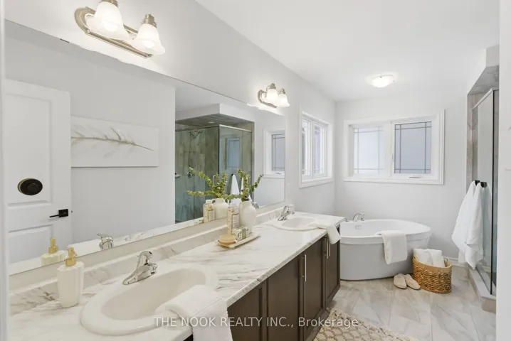 **OPEN HOUSE Sunday, Feb 22nd | 2-4 PM** This stunning 4 bedroom “Macdonald” model by Graycraft Homes, developer of the prestigious Upper Courtice Trails, is under 5 years old, set on a premium lot backing onto conservation lands, offering privacy, tranquility & an elevated living experience. Thoughtfully designed with refined finishes & architectural presence, this home blends timeless elegance with modern luxury. The heart of the home is a show-stopping custom kitchen, beautifully appointed with stunning quartz countertops, an expansive centre island with breakfast bar seating, and a striking designer backsplash. A full suite of GE Café appliances elevates both form and function, including an induction cooktop, custom statement range hood, double beverage drawers, a curated coffee bar and pantry space. A true entertainer’s kitchen designed for both everyday living and special occasions. A walk-out to the yard seamlessly connects indoor and outdoor living, all while overlooking serene conservation views, enjoying the patio, gardens and hot tub. The living room exudes warmth & sophistication, featuring a coffered waffle ceiling & a gas fireplace that anchors the space with understated luxury. A formal dining room offers elegant entertaining options, while the sunken foyer and interior garage access to a mostly insulated garage. The primary suite is a private retreat, with 2 walk-in closets, and a spa-inspired 5-piece ensuite showcasing a corner soaker tub, glass-enclosed frameless shower and double-sink vanity. Three additional well-proportioned bedrooms, each with built-in closets, provide flexibility for family, guests, or home office use. The level is completed by with second-floor laundry, reinforcing the thoughtful design throughout. The lower level currently used as family space with a large rec room, featuring large egress windows that flood the space with natural light and a rough-in for a bathroom. Extras; gas line to BBQ/split double tap.
