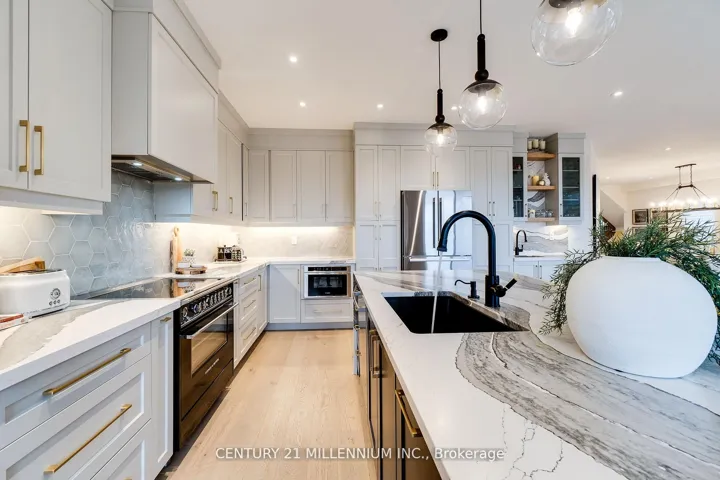 Step into refined luxury in this impeccably designed 4-bedroom, 4-bathroom home, where timeless sophistication meets effortless, low-maintenance living. Thoughtfully curated for both everyday comfort and elevated entertaining, this home offers an exceptional indoor-outdoor lifestyle set against a breathtaking ravine backdrop. A custom-designed mudroom welcomes you before the main living level unfolds in seamless flow. The chef-inspired kitchen, enhanced by over $52,000 in premium upgrades, anchors the space and opens naturally to the inviting family room. Here, a striking linear gas fireplace with custom Cambria raw-edge shelving and mantel creates a warm yet modern focal point. Expansive 12-foot patio doors frame sweeping ravine and sunset views, extending the living space onto a full-length deck-ideal for al fresco dining, lounging, and entertaining. The primary suite is a true private retreat, featuring a morning kitchen, double-sided fireplace, & a spa-inspired ensuite with double shower & freestanding soaking tub. A secluded private deck overlooks tranquil ravine views, offering the perfect escape to unwind. Upstairs, convenience meets luxury with a beautifully finished laundry room accented with Cambria detailing. The walk-out basement, complete with rough-ins, awaits your personalized vision-perfect for additional living space, a home gym, or entertainment area. Designer finishes elevate every corner, including Mirage White Oak 6.5″ flooring, Cambria quartz countertops throughout, 7.25″ baseboards, pot lighting, upgraded fixtures, & refined finishes throughout. Outdoors, discover your private, low-maintenance oasis-professionally landscaped and designed for effortless enjoyment. Highlights include an Avoca saltwater heated pool, Arctic Spa hot tub, and a thoughtfully designed pet garden, creating a resort-like atmosphere. Set on a premium ravine reverse pie lot in a safe, quiet cul-de-sac, this home delivers privacy, views, & an unparalleled lifestyle!