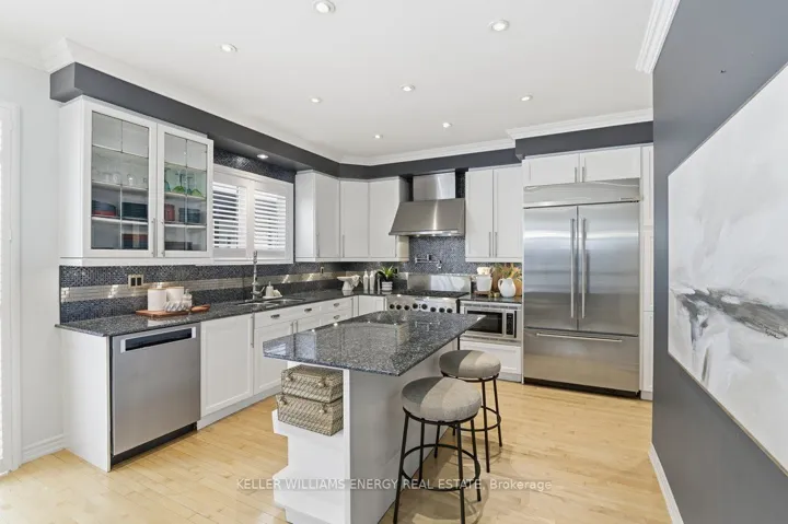Town & Country Victorian Executive Home | Private Bowmanville Enclave. Tucked quietly into a pedestrian-friendly enclave in Bowmanville, this Town & Country Victorian blends classic architecture with modern executive living. Despite its central location, the street itself is calm, walkable, and insulated from traffic-more morning dog walkers than passing cars. Professionally designed hardscaping leads to a grand foyer that opens to a flowing, open-concept main floor. Rich hardwood floors, crown mouldings, and recessed lighting set a polished tone throughout. The chef’s kitchen anchors the home, featuring stainless steel appliances, a statement Kitchen Aid 6-burner gas range with pot filler, granite island, and a fully appointed butler’s pantry-designed for both serious cooking and effortless entertaining. The family room, framed by California shutters and a fireplace, keeps everyone connected while the chef works center stage. A formal dining room with coffered ceiling adds elegance, while the main-floor laundry offers direct access to the insulated garage and a convenient ground-level walkout. The backyard is layered and intentional, easily accessed by a main floor walkout: a raised stone patio, private gazebo, two-season sunroom, and a charming potting shed-sun-filled, functional, and quietly luxurious. Upstairs, a dedicated work-from-home space opens to an east-facing covered balcony-coffee, sunrise, silence. Four oversized bedrooms include a spacious primary retreat with walk-in closet, spa-style ensuite, and whirlpool tub. This is a true executive residence-beautifully upgraded, casual yet thoughtfully designed-set within a peaceful neighbourhood that feels hidden in plain sight.