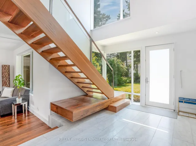 Discover this exceptional lake-view residence, where contemporary design meets serene natural beauty. This stunning home features a sleek open-concept layout, accented by expansive windows and multiple walkouts, showcasing unobstructed views of Lake Ontario and lush conservation land. From the moment you step into the grand foyer with soaring 18.5-foot ceilings, a statement chandelier, oversized marble slab flooring, a two-storey window, and a custom Walnut guest closet you’ll be captivated by the sophisticated details throughout. The main level is an entertainers dream, offering a seamless flow between the spacious living, dining, and family rooms, all adorned with pot lights and rich Walnut flooring. The chef-inspired kitchen is the heart of the home, boasting a dramatic waterfall island with Stone countertops, seating for four, and custom pull-out organizers. This space opens directly to multiple outdoor entertaining decks, perfect for hosting or relaxing while enjoying panoramic views. Ascend the striking open-riser Walnut staircase, framed with glass railings and stainless steel handrails, to find a luxurious primary retreat. The serene primary suite offers a private sanctuary, complete with its own balcony, window wall with lake views, a custom dressing room with skylight and extensive cabinetry, and a spa-like ensuite featuring heated floors and serene conservation views. The fully finished walk-out lower level adds even more space to unwind, with a large recreation room featuring heated floors and direct access to the beautifully landscaped rear grounds. Enjoy quiet evenings around the firepit or take advantage of the convenient access to the upper decks, seamlessly connecting indoor and outdoor living. This exceptional property offers the rare combination of modern luxury, privacy, and spectacular natural surroundings perfect for those who love to entertain or simply soak in the beauty of the outdoors. Video and audio may be on during viewings.