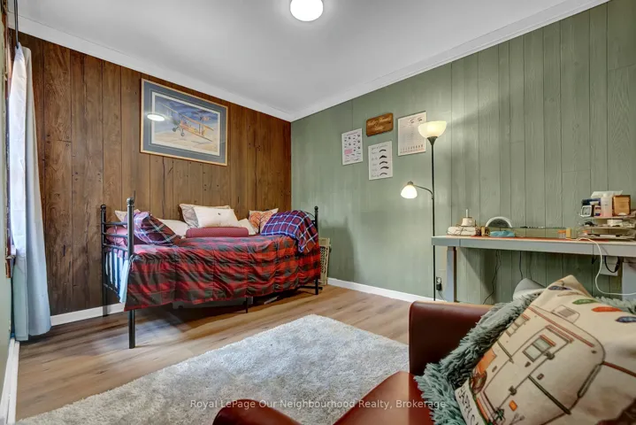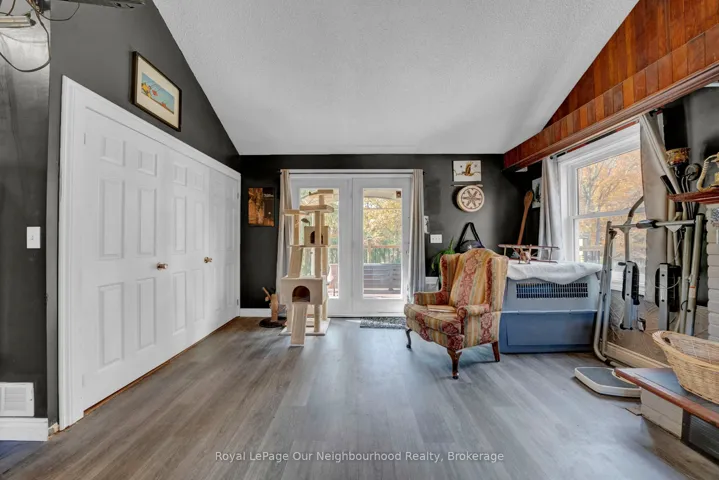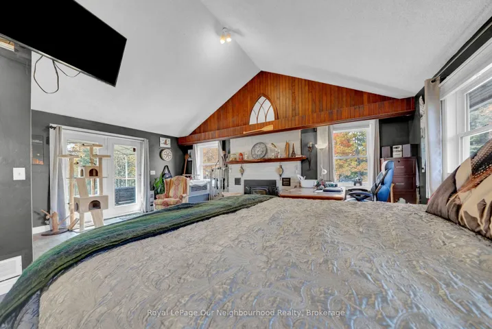Charming, former Crooked Creek Schoolhouse, set on 1.49 private acres, offering character, space, and multigenerational potential. This unique country home features warm wood accents, a cozy woodstove, and inviting rustic charm throughout. The main level includes a bright eat-in kitchen with pantry area, spacious living room with wood accent wall, and a charming library/reading nook. Walk out to the deck and enjoy peaceful countryside views. The impressive primary suite offers vaulted ceilings, large windows that fill the space with natural light, wood-burning fireplace, his and hers cedar-lined closets, coffee station, ensuite bath, and private deck access. The walkout lower level provides excellent flexibility with a third bedroom, kitchenette, 3-piece bath, generous storage, and separate entrance – ideal for extended family or in-law potential. Additional features include an attached double garage, raised garden beds, chicken coop, mature cherry trees, and new Honeycrisp apple trees. A rare opportunity to own a distinctive country property with history and endless possibilities.