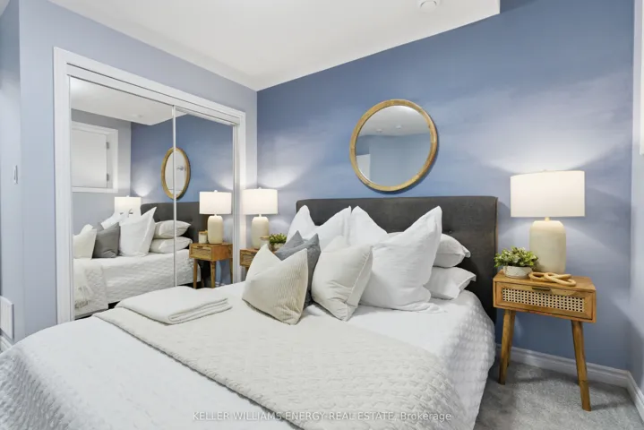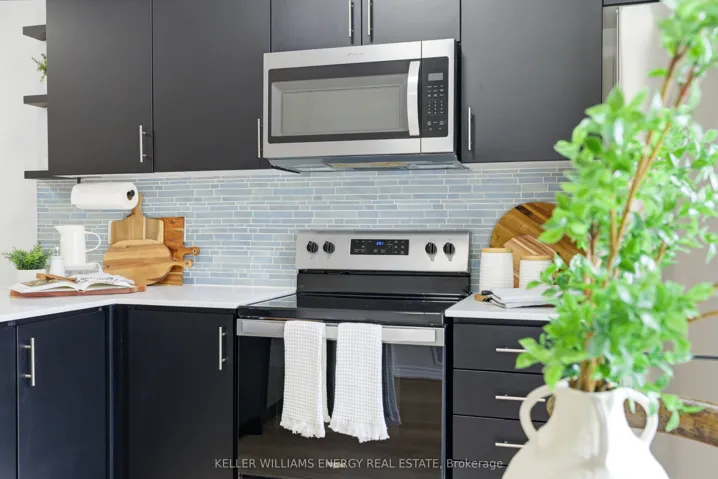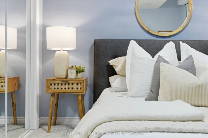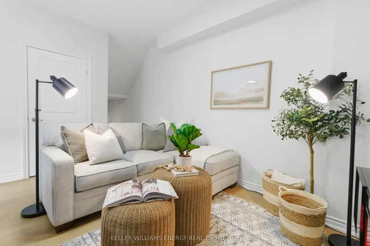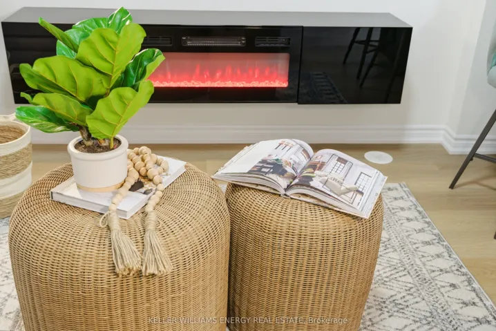 Just 4 Years New, This Beautiful Two-Level Townhome Offers A Thoughtfully Designed, Open-Concept Main Level That Maximizes Both Space And Flow. Vinyl Flooring Runs Throughout The Main Floor, Which Also Includes A Convenient Powder Room And A Large Closet. The Sleek, Modern Kitchen Seamlessly Connects To The Living Area, Creating A Bright And Functional Space Ideal For Both Everyday Living And Entertaining. The Living Room Is Warm And Inviting, And Features An Electric Fireplace. The Kitchen Features A Stylish Backsplash, Quartz Countertops, Stainless Steel Appliances, And A Peninsula With Additional Seating That Naturally Bridges The Kitchen And Living Room. A Walk-Out From The Kitchen Leads To A Cozy Private Balcony, The Perfect Spot To Enjoy Your Morning Coffee. The Lower Level Features Two Bedrooms With Above-Grade Windows, A 4-Piece Bathroom, And Convenient In-Suite Laundry. This Home Presents An Excellent Opportunity To Own A Modern Townhome In A Central Location, Just Minutes To All Amenities, Transit, Highway 401, And Nearby Running Paths!