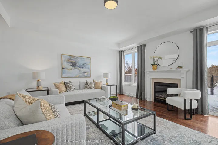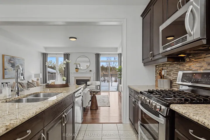 This fabulous home backs onto greenspace and is linked at the garage only providing all the privacy and benefits of living in a detached home. This stunning home boasts 1882 sq feet above grade and 830 sq feet of basement. Nicely upgraded & tucked away on a quiet crescent between the 401 & 407 & just a few minutes drive to major conveniences like Costco, Walmart, Metro, Cineplex, Tons of restaurants, Pickering Casino, Lots of walking trails, Greenwood conservation, Deer Creek Golf Course. This house showcases an open concept layout great for large families & entertaining …The unique layout for this model has the kitchen open to the dining area and living room. The main floor has tons of light with large windows & patio doors, 9 foot ceilings, crown moulding, Pot lights, Hardwood floors on main and upper, gas fireplace, direct access to garage, walk out to backyard with no neighbours behind. The expansive eat in kitchen offers a breakfast bar island, granite counters, gas stove, stainless appliances, under mount sink. Oak staircase welcomes you to the second floor with stunning hardwood and a great layout. Primary bedroom at the back of the house overlooking the backyard/ greenbelt for added privacy, with your own bath and walk in closet, set well away from the rest of the bedrooms on the second floor, other bedrooms are great sizes with large closets, All rooms have wooden blinds as well The basement is partially finished with a rec room at the rear with pot lights and large windows. The rest of the basement provides a great canvas to finish as you like. Front and rear yards have been landscaped with stone and interlock, Also rough in for bathroom in basement near gym set up.