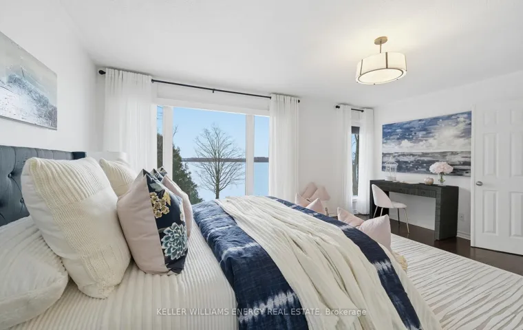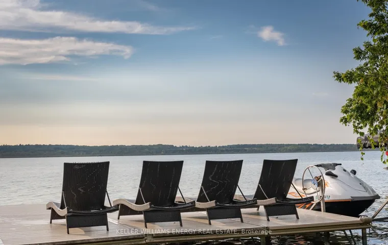 An extraordinary waterfront estate on Lake Scugog, set on a premium 87.5 x 219.5 ft lot along one of Port Perry’s most desirable stretches of shoreline. With over $400,000 invested in thoughtful renovations, this residence has been reimagined to deliver refined lakeside living at its finest. The main level showcases a sophisticated open-concept design anchored by a dramatic great room with vaulted ceilings and a statement stone wood-burning fireplace. Expansive windows frame sweeping lake views and showcase the home’s prized western exposure offering front-row seats to spectacular sunsets that paint the sky each evening. Seamless access to the wraparound deck creates effortless indoor-outdoor living, whether hosting sunset dinners or enjoying quiet mornings by the water. The custom kitchen is beautifully appointed with crown moulding, premium stainless steel appliances, and an oversized quartz island designed for gathering. Upstairs, hardwood floors run throughout three generously sized bedrooms. The primary retreat is a tranquil sanctuary with panoramic lake views, dual walk-in closets, and a spa-inspired five-piece ensuite. The fully finished walk-out lower level is perfectly suited for extended family or guests, complete with a quartz-topped wet bar, heated bathroom floors, and a private guest bedroom. Step outside to a true waterfront lifestyle. The expansive deck overlooks a private dock and coveted sandy-bottom shoreline , clear, gradual, and perfectly suited for swimming, paddleboarding, and effortless lake enjoyment. With exceptional depth, privacy, and uninterrupted views, this property offers a rare combination of luxury, recreation, and natural beauty. This is an exceptional opportunity to own a fully renovated luxury home on one of Lake Scugog’s most sought after waterfront settings where sunsets, swimming, and sophisticated lakeside living converge.