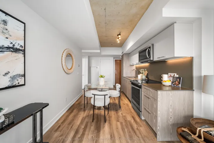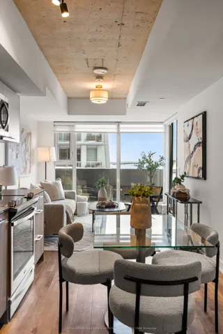 Experience the charm of refined urban living in the heart of Riverside. Perfectly positioned between Leslieville, Riverdale, and Corktown, this thoughtfully appointed one-bedroom, one-bathroom residence – with underground parking and storage locker – offers a seamless blend of style and everyday ease. The suite is designed for comfort and functionality, with an open-concept living and dining space that flows effortlessly, creating a welcoming atmosphere for both quiet evenings and intimate gatherings. Clean lines and contemporary finishes provide a modern backdrop, complemented by a well-proportioned layout that maximizes usable space. Beyond your front door, the building offers an impressive collection of amenities, including a rooftop terrace with an outdoor pool and sweeping views of the downtown skyline – a serene escape above the city. Residents also enjoy a fully equipped fitness centre, an elegant lounge, billiards room, and 24-hour concierge service. Located just steps from TTC streetcars and the DVP ramp, commuting downtown is effortless. Enjoy weekends exploring Riverside’s beloved cafés and boutiques, including Dark Horse, Boxcar, and Marmalade, or take in sunset views from Riverdale Park and the iconic Broadview Hotel rooftop. An exceptional opportunity to call one of Toronto’s most vibrant east-end communities home.