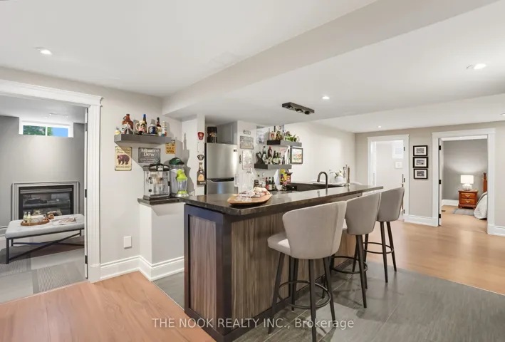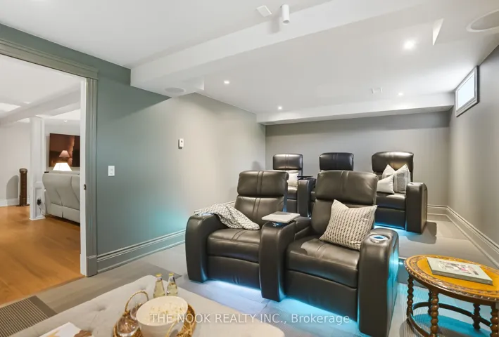 Custom-built Corvinelli bungalow featuring over 4400+ sqft of finished living space blending comfort, thoughtful design and unmatched quality.Nestled on a generous lot with mature trees this home offers a private retreat with modern luxuries. Exquisite craftsmanship is evident with high-quality upgraded casings, headers, 96″ high by 13/4″ thick solid doors on main floor and 80″ high by 13/4″ thick solid doors in basement & taller baseboards throughout.Crown moulding, 9′ smooth ceilings, 5″ vintage hickory hardwood enhances the warmth and sophistication of the main floor. Open concept living room with custom built-in flows into the family size eat-in kitchen with maple cabinetry, granite counters and honed travertine flooring flowing seamlessly into the butlers pantry with bar fridge, freezer and prep sink offering added convenience and style. Main floor laundry with granite counters, wall-to-wall uppers, under-mount sink and convenient garage access. Primary is a true retreat with a sophisticated tray ceiling, walk-out to covered patio, 5-piece ensuite with heated floors, deep soaker tub, glass shower w/hand held, 4 jets & rain shower, double vanity and spacious walk-in offering ample storage and a touch of luxury. Oak staircase with upgraded railing and wrought iron pickets lead to the expansive lower level with premium 7″ Torlys cork flooring, spacious recreation room anchored by a dramatic floor-to-ceiling stone gas fireplace and wet bar featuring leathered granite, fridge and dishwasher. A dedicated gym area provides space for wellness and theatre room is complete with a gas fireplace offering a truly immersive cinematic experience. Lower level also includes two generously sized bedrooms, luxurious 4-piece bath with heated floors, cold cellar and ample storage. Second staircase provides convenient access to the exterior and oversized garage. From high-end finishes to its functional layout and peaceful setting this custom built home is a true oasis and rare find!