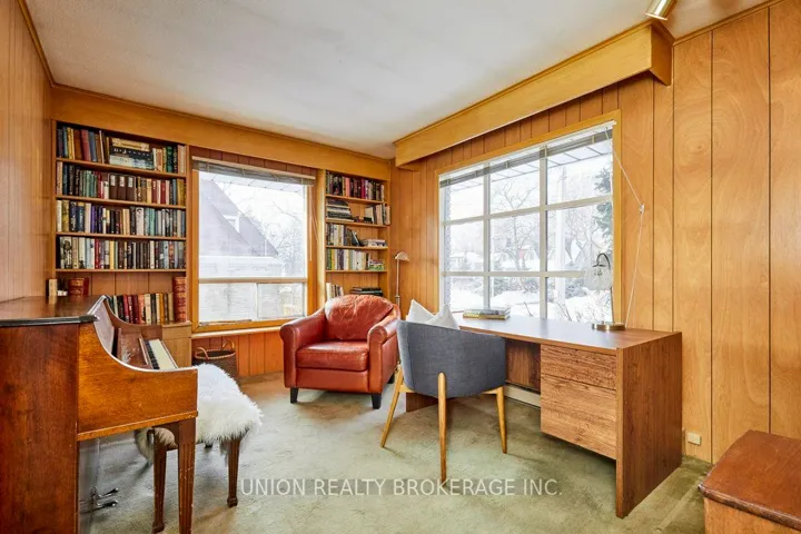 An authentic mid-century modern bungalow, boasting a remarkable 60 foot frontage. Expansive and unique living space spanning over 4,000 square feet. A slate-tiled foyer welcomes you into a spacious living room with a central fireplace, framed by built-ins and illuminated by a large window overlooking the front yard. Beneath the broadloom, original hardwood floors reveal the home’s enduring charm. The living room opens into the dining area and onward to a sun-filled, sunken family room/sun room, complete with sliding doors leading to the flagstone garden. The family kitchen overlooks a breakfast nook with wall-to-wall windows, and a private, fenced backyard. Adjacent to the kitchen is a convenient laundry/mudroom plus powder room, and direct access to the garage. The main floor also hosts the generous primary bedroom with backyard views and his-and-hers closets, a second bedroom with large closet, and a den with built-ins, ideal as a third bedroom, office or library. The high, finished basement adds a large recreation room, a games room, two additional bedrooms, and a bathroom. The double private drive and built-in garage offer convenient parking for multiple vehicles. A scenic residential pocket offering a quiet, green environment with quick access to the waterfront, and the owner’s favourite – Rosetta Mc Clain Park. A hidden gem, and a rare and unique opportunity. Steps to TTC, and the shops and restaurants along Kingston Road. Birch Cliff Public School and Birchmount CI school district.