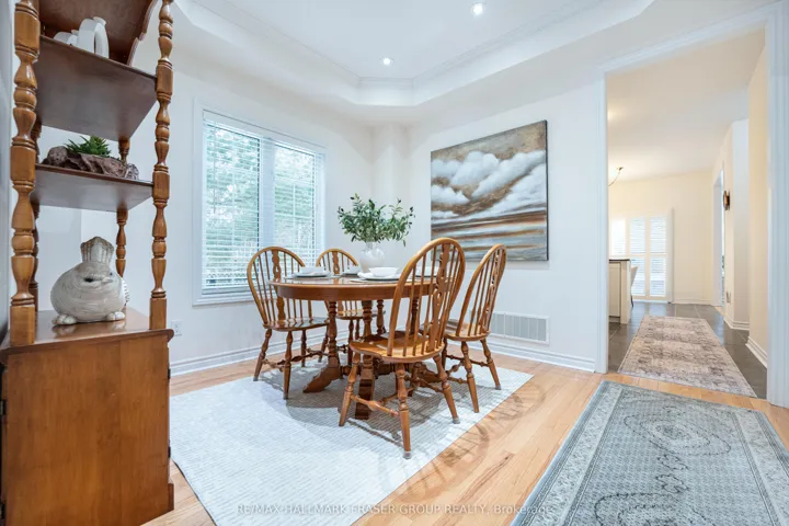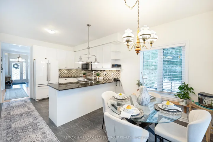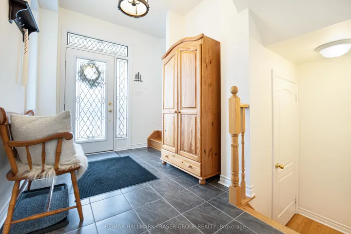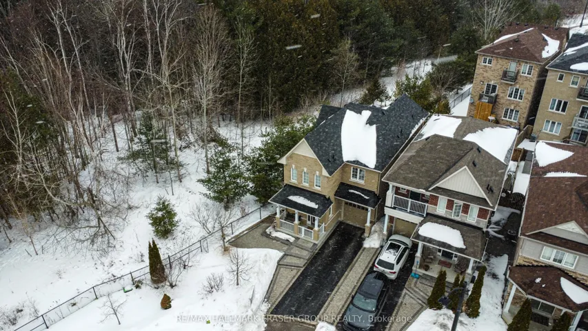 Tucked at the end of a quiet cul-de-sac, this end-lot detached sits beside the ravine with no neighbour to the west. The west side and backyard are wrapped in treeline and conservation, creating a true sense of retreat, where your daily view is greenery, birdsong, and sunset light filtering through the canopy. Curb appeal begins with an interlocking walkway framed by two interlocking flower beds. Out back, the lifestyle is the headline: step onto a generous deck with a pergola set against the forest edge. Entertain with a gas BBQ connection, gather around the gas fire pit, then unwind in the Arctic Hot Tub Swim Spa, all while the ravine and treeline deliver privacy you can feel. Thoughtful native plantings and trees invite monarchs and songbirds, while an outdoor pot light system extends the atmosphere into the evening. Inside, the main level offers a formal dining room with hardwood floors, a vaulted ceiling, pot lights, and a large window overlooking the trees. The open-concept kitchen features a wrap-around counter, tile backsplash, ceramic flooring, and a bright breakfast area with a walkout to the deck (glass door with shutters) plus a west-facing window to the ravine. The living room is warm and light-filled with a gas fireplace, hardwood, and large windows on two sides. Upstairs, an open study/loft with hardwood provides flexible work-from-home or lounge space. Bedrooms are generously sized with excellent closet storage. The primary suite impresses with a spa-like ensuite (soaker tub, glass shower, double vanity, separate toilet) and a custom built-in closet system. Second-floor laundry for added convenience. Finished basement includes two rooms and a 3-piece bath; currently used as a guitar/wood workshop. Equipment may stay or be removed. Minutes to Seaton Centre shops, banks, cafés, dining, trails/green space, and Pickering Golf Club. Furnace 2015, AC 2016, Roof 2015, HWT 2015, Hot Tub Swim Spa 2016, Deck & Pergola 2016. Window 2015