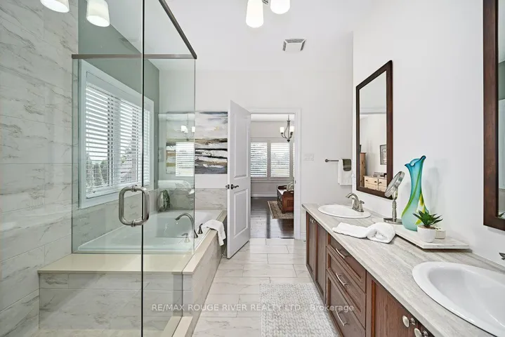 Graceful Living, Your Time has Arrived. Step inside and Welcome to one of Kings Bay’s Finest Homes and only 15 Mins to Port Perry. This 1986 Sq Ft Custom, 1 Owner 3 Bedroom All Brick Bungalow features Modern 9 Ft Flat Ceilings with Led Lighting and Spotless Hardwood Flooring Throughout! A Beautiful Primary Retreat complete with a Lavish 5 Pce Ensuite with Double Glass Shower and Soaker Tub plus a Walk-Thru Dressing Room for Quiet Comfort. 2 further Spacious Bedrooms offer Double Closets and Bright Picture Windows. The Classic Open Plan Boasts Views of the water from The Large Dining and Great Room Windows and Kitchen. Sliding Doors access the Western Exposure Stone Patio with Pergola and Retractable Awning for Sun Shade and Bbq’s … Its The Sunset Spot ! A Custom Backsplash and Under Cabinet Lighting enhance the Quartz Countertops and Breakfast Island in the Ample Kitchen. A Pantry and Custom Cabinetry plus a full compliment of Quality Stainless Appliances and Fume Hood will Please Any Chef in the Family … Cook whilst You Entertain ! A Cozy Gas Fireplace in a Custom Hearth anchors this Space. The Convenient Laundry Room provides access to the Garage Directly, which is equipped w/Dual Liftmaster Openers for easy indoor parking. The Oak Staircase leads you to the Lower Level for Recreating and Relaxing in Style ! Features include more Hardwood Flooring over Dricore and More Led Lighting, Built-in Speakers, Another Napoleon Gas Fireplace w/Thermo-Remote and Look-out Windows, making this a Wonderful Warm and Bright Area of the Home .The Custom 3pce Bath with Glass walled Double shower is Sure to please after a Work-out in the Exercise Area. Nestled in between Lake Scugog and the Nonquon River, this enclave in Seagrave enjoys country living with urban amenities. Only 8 minutes north of the Town of Port Perry, and Port Perry Hospital and only 40 Mins from Whitby. Please Visit the Virtual Tour Don’t wait to Explore This Opportunity.
