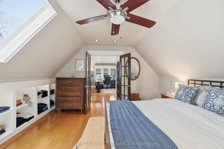A century home in the heart of Leslieville, this beautiful, detached 5+1 bedroom dwelling was redesigned and renovated in 2010 to comfortably accommodate a large family. Inside and out, you’ll sense the character and quality. A contoured natural stone walkway leads through a mature perennial garden up to a cozy and sheltered front porch. Walk through the front door and you’ll immediately notice the light and space of the living area-including the heated walnut floor. The open concept kitchen and dining area feature a 6 burner/4 oven cast iron AGA stove and extensive granite countertops that make food prep and entertaining a breeze. Climbing the custom staircase to the 2nd floor, you will find 4 bedrooms, a linen closet, a 2-piece bathroom, and a separate shower room (also with a heated floor). This practical configuration helps to facilitate the family morning rush. On the third floor, skylights bathe the primary bedroom and home office with natural light. There’s also a two piece ensuite and sliding doors leading to a flat roof waiting to become a private deck. A laundry chute on the third floor landing goes directly down to the basement with easy access to the washer and dryer located in the 4-piece bathroom. A dug out and benched basement offers space saving features and storage: a cozy TV cave with a built-in sofa perfect for sleepovers, a bedroom (the 6th) with a built-in bed (with storage at each end), a utility room, and a closet. The tile basement floor is heated. The back yard features a seating area under cedars and a small perennial garden. Street parking is generally plentiful. The homeowners have parked within easy distance of the house for decades. A January 2026 home inspection reports the house is in above average condition. That report and all plans, permits and invoices for major work done on the house are available upon request.