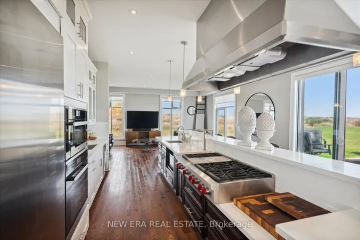 Power of Sale (mortgage foreclosure) opportunity with financing available. The vendor is willing to provide a first mortgage loan of up to $2,000,000 at a competitive interest rate, offering a rare and flexible financing opportunity for qualified buyers. Built only 10 years ago, this custom 7 bedroom, 8 bathroom estate is privately set behind gates on a serene premium 6+ acre lot. Designed for tranquility, security, and privacy, the fully fenced property features a scenic natural water feature and expansive sports court, creating a resort-style atmosphere.The heart of the home is an impressive open-concept kitchen anchored by a stunning 25-foot quartz centre island with abundant seating, complete with a Wolf gas stove, dual Sub-Zero refrigerators, two Miele built-in ovens, under-cabinet lighting, and premium finishes throughout. The kitchen flows seamlessly into the family and dining areas with walkout access to the backyard patio overlooking the scenic grounds.A separate formal living room opens onto a balcony spanning the front of the home. The main floor also offers a private in-law suite with coffee bar, two bedrooms, 3-piece bath, and a dedicated office. Upstairs features five generously sized bedrooms, each with its own ensuite, plus a convenient second-floor laundry room.The primary suite includes a walk-in closet with custom shelving and a spa-inspired 5-piece ensuite with steam shower, fireplace, and Juliette balcony. The fully finished basement features radiant heated floors. Additional highlights include geothermal heating, gated and fenced grounds, a 5-car garage, and custom motorized blinds with individual remotes. A rare opportunity to own a private estate with flexible vendor financing in place.