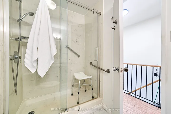 Time for a Change ? Want to Keep Your Furniture ? This 3 Bedroom 1683 Sq ft, Sun Filled Corner Suite with 3 Bathrooms (1 Ensuite) and Full Size En-Suite Laundry W/sink Is Your Answer ! A Spacious Balcony w/Composite Decking off the Eat-in Kitchen is Perfect for Morning Coffees. The Main Level Boasts 837 Sq Ft with A Very Large Living Room and Dining Room (474 Sq Ft ) is Perfect for Family Gatherings around The Fireplace ! The Upper Level Boasts 846 Sq Ft with a Primary Bedroom Features Wicc and a 2Pce En-suite Plus Sliding Doors to a Juliette Balcony. The 4 Pce Bath on this Level features In-Floor Heating, 2 Other Spacious Bedrooms on this level also with Sliding Doors and Juliette Balconies. Loads of Closets. Private Access Door to 5th Floor and ROOFTOP LOUNGE/SUNROOM with 2/Pce Bath (Think Golden Hour Sunset Cocktail Party) Amenities Include: Gym/Sauna and Shower, Party/Gathering Room, Equipment Workshop, Secure Underground Parking Space (16 Steps from Doorway), Car Wash Area & Convenient Storage Locker, Bicycle and Golf Club (Walk to Oshawa Golf and Curling Club) Storage Room.Maintenance Fees Include All Utilities (Heating and Cooling, Hydro, Water and Sewer, Building Insurance, On-Site Superintendent), Convenient Location, Steps to Lake Ridge Hospital, Transit, Alexandra Park, Historic Parkwood Estate.This is a Gem of a Residence with a Sense of Community and Not to be Missed. *** CLICK VIRTUAL TOUR *** for Floorplans and More