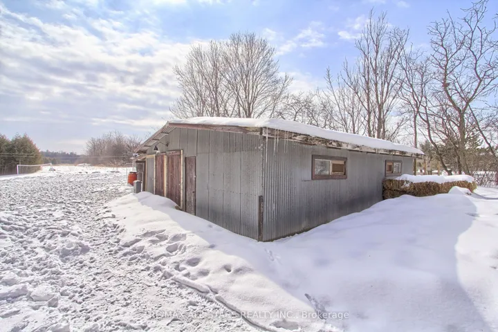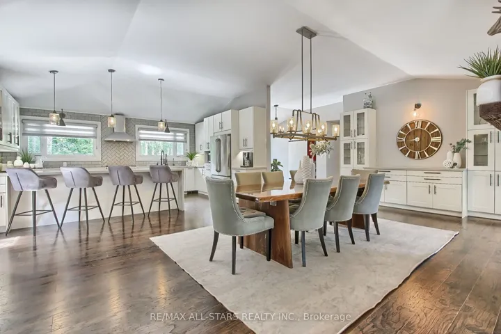 Drive thru your gated tree lined driveway to 10 acres of natures beauty- Generous sized 3 bedroom bungalow with a walk out basement. Beautifully designed with an open concept layout and multiple walkouts to a wrap around deck. This north facing home features custom barn door enclosed closets, hardwood thru out, custom window treatments, electric light fixtures, fancified washrooms with a floating vanity and hexagon tile work, live edge b/in cabinets and wood and stone feature walls. Breathtaking views from every window. Renovated kitchen with quartz countertops, seating for 4 at the breakfast bar and overlooking the dining room. Ideal for entertaining. Double sided fireplace!!! Fishing worthy creek on the east side and forest walking trails..Barn with water and electricity is ideal to house horses, donkeys, goats, chickens and sheep. Work shop is the ideal man/handyman cave. New Detached triple car garage 35 x 37 feet with car port.All this only 4 minutes from town, 407, Go Station and amenities. New WIndows, All new electricity running to the barn.
