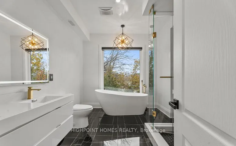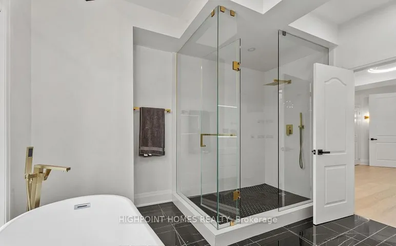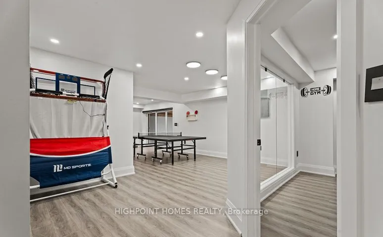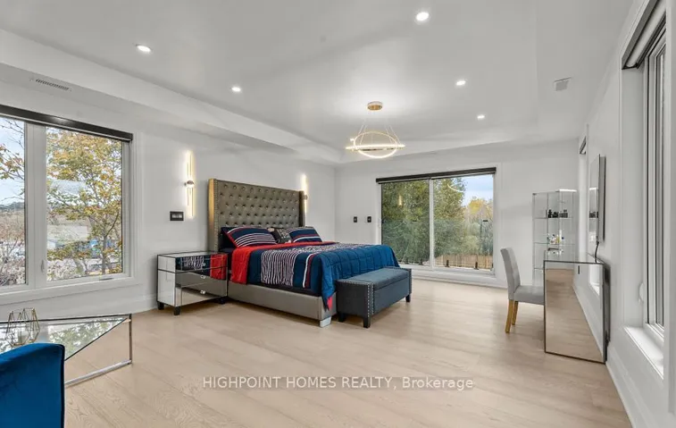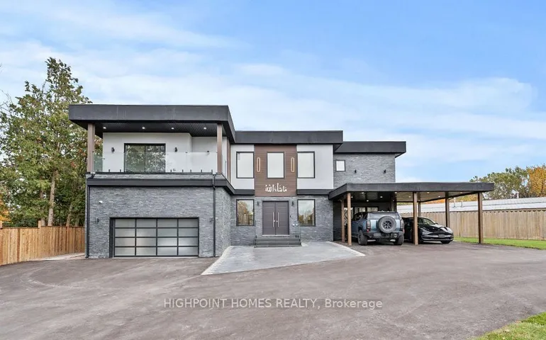 Two-year new custom-built, gated estate offering 8,700+ sq. ft. of finished living space at the Durham-York border: just 7 minutes to Hwy 407. Electronic gates open to a fully fenced property (approx. 150 ft metal front + 600 ft wood), double garage + double carport, EV charger, and parking for 40+ vehicles. Inside: 20-ft foyer ceilings, statement chandelier, and a full-height glass staircase; double-sided fireplace; open-to-above family room; whole-home automation with built-in speakers and 40+ motorized blinds. Chef’s kitchen with dual islands, Jenn-Air appliances, 48″ cooktop, and twin pantries. Four upper bedrooms each with private balcony, spa ensuite, and custom walk-in; second-floor laundry. Finished lower level with theatre, gym, rec room, and guest suite. Comfort upgrades include two brand-new, efficient cold-climate heat pumps. Resort-style backyard with Zen garden, 3 decks, 1,000-sq.-ft. patio, basketball court, and playground.