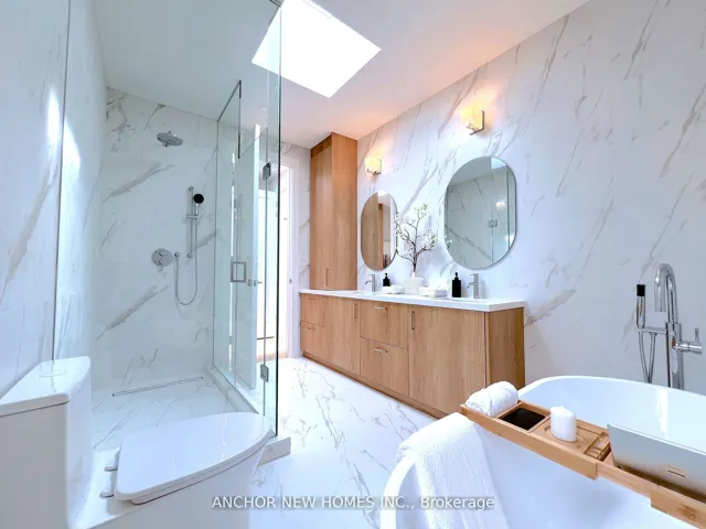 Welcome to this beautifully designed modern detached home with a legal basement suite, offering over. 3,200 sq.ft. of luxurious living space (incl. bsmt) in one of East York’s desirable neighbourhoods! Set on a generous lot with private parking, this 3+1 bed, 4 bath home blends contemporary design with everyday functionality. The open-concept main floor showcases wide-plank engineered hardwood floors, pot lighting throughout, and a roughed-in surround sound system. A sophisticated smart home setup with 3 cameras & video doorbell provides modern convenience and peace of mind.The dining area flows into a chef’s kitchen featuring s/s appliances, 6-burner gas stovetop with pot filler, waterfall quartz island, custom countertops & sleek cabinetry – perfect for entertaining. The family room offers a gas fireplace feature wall, large windows & walk-out to the backyard deck. The living room is enhanced by a beautifully designed staircase with striking custom wall paneling, creating a sophisticated focal point.The oak staircase with glass railing is accented by a floor-to-ceiling feature wall & two skylights above, flooding the space with natural light. Upstairs, three additional skylights create an airy, sun-filled atmosphere. The serene primary suite features custom closets, acoustic wood paneling, skylight w/ roof access & a spa-inspired 5-pc ensuite with soaker tub & double vanity. A stylish 2nd bath & laundry area complete this level.The legal basement suite offers high ceilings, large windows, a modern kitchen w/ s/s appliances & breakfast bar, sep. entrance, in-suite laundry & dedicated hydro meter – ideal for rental income or extended family. Outside features a private backyard w/ deck, BBQ hookup & shed, plus potential for a future garden suite (City services in place). Near parks, schools, shops, TTC/GO, DVP & downtown. A contemporary East York gem blending luxury, functionality & timeless design – ready to be yours!