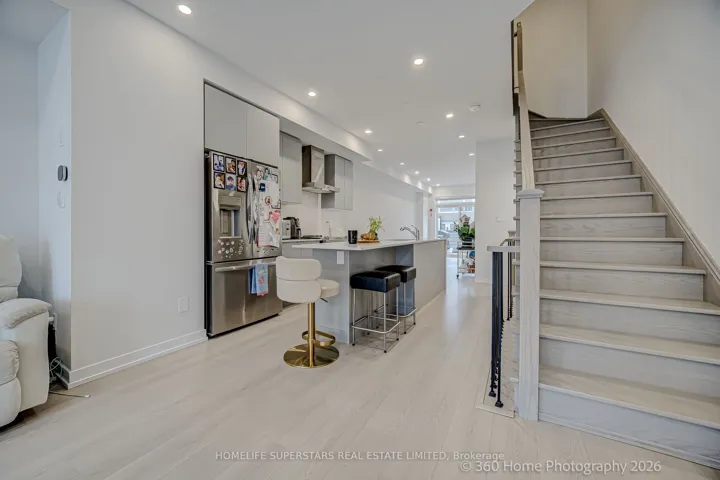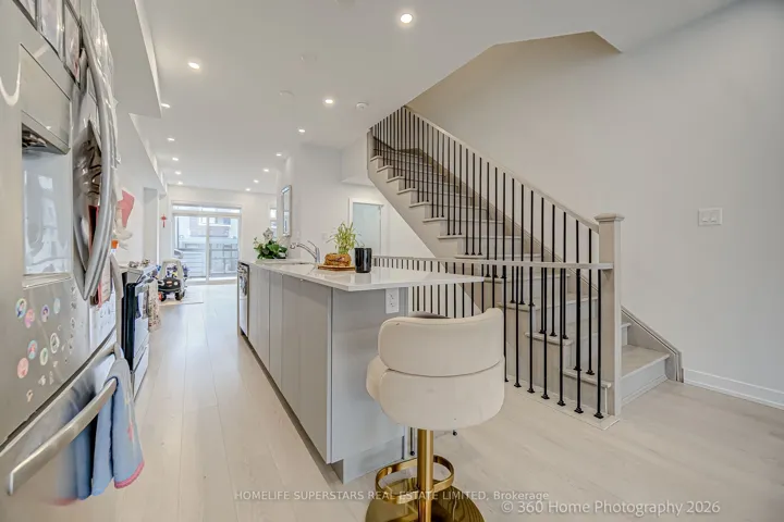 $3,250 current rental income. Over $100,000 invested in high-quality finishes. Modern 3-storey luxury freehold townhouse with no monthly fees, quality built by Madison in 2024 still under Tarion warranty. Total of 1,918 sq. ft. plus a 180 sq. ft. terrace and full-size basement. This Home Offers 4+(Studio) Bedrooms, 5 Bathrooms, and 3 Kitchens, surrounded by approximately 100 newer high value townhomes. This is The Most Recent Development in South Scarborough. Owner Occupies 1,400 sq. ft. plus BBQ Terrace, 2nd and 3rd floors consisting of 3 bedrooms, 2.5 bathrooms, a laundry room, garage, and driveway. This floorplan is very rare to find. Upgrades: Floodlight security cameras (front and rear) interlocking driveway, basement studio apartment with separate entrance, large window, kitchen (removable cooktop), custom cabinetry, pot lights, and fully furnished with luxury finishes. Ground level includes a builder-finished 1-bedroom, 4-piece bathroom, separate front entrance, pot lights, kitchen (removable cooktop), custom cabinetry, and Murphy bed with custom cabinets furnished. The 2nd flr features 9ft ceiling, Soundproof insulation in living room, an extended quartz kitchen island with breakfast bar seating for 3 people, stainless steel exhaust hood fan and appliances, custom cabinetry, and gas line for BBQ on terrace. The 3rd Flr offers 3 bedrooms, 2 bathrooms, a primary bedroom (4 piece ensuite) and walk-in closet organizers. Waterproof premium hardwood flooring, Electric blinds, single-panel doors, and luxury quartz countertops throughout the luxury home. Garage features 10.5 ft ceilings, ample storage, and EV charger rough-in. Prime location: 5-minute walk to public & secondary schools, Fresh Co, Shoppers, Mosque, Churches, 10-minute TTC commute to LRT crossover and Kennedy Station; 7-minute drive to Scarborough Town Centre and Hwy 401; and 10-minute drive to Hwy 404/DVP via Lawrence Ave East. 30-minute drive to downtown Toronto