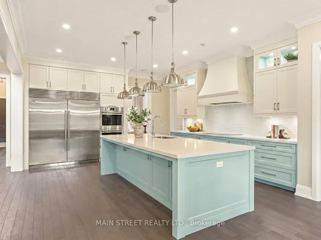 Experience elevated living in this 8,000+ sq. ft. custom-built estate set on a prestigious ~1-acre lot backing onto the renowned Deer Creek Golf Course. Thoughtfully designed with 6 bedrooms, 7 bathrooms, and 3 kitchens, this residence blends timeless elegance with state-of-the-art technology. The main floor primary retreat showcases two expansive walk-in closets, and a spa-inspired ensuite with freestanding tub, oversized shower, and integrated Sonos sound. A main floor nanny/in-law suite is a private haven for family or guests. At the heart of the home, the chef’s kitchen boasts Wolf induction cooktop and double ovens, oversized Sub Zero refrigerator and freezer, Cove dishwasher, built-in microwave, and oversized island. A walk-in pantry, dedicated coffee bar, and sunlit breakfast area complete this culinary masterpiece. Walk out to a covered patio with Sonos speakers, overlooking manicured grounds with irrigation and a custom fire pit. The main level also showcases an open living room with soaring 22-foot coffered ceilings and gas fireplace, a formal dining room, private office, oversized mudroom with garage access, and main floor laundry. The lower level is designed for unparalleled entertaining and wellness, boasting 9-foot ceilings, heated floors throughout, a gym, a pre-wired theatre or golf simulator room, a spacious custom recreation space, custom kitchenette/bar, and abundant storage. A private basement apartment with separate entrance includes a full custom kitchen, bedroom with walk-in closet, 5-piece bath, dedicated laundry, living room, and office, offering multi-generational living. Smart home features include Sonos sound, Uni Fi extenders, custom window coverings, motorized roller shades, and full security system. Exterior highlights feature a 3-car garage, dual furnaces & A/Cs, professional landscaping, and expansive outdoor living spaces. This rare offering combines luxury, technology, and family function in one of Ajax’s most coveted settings.
