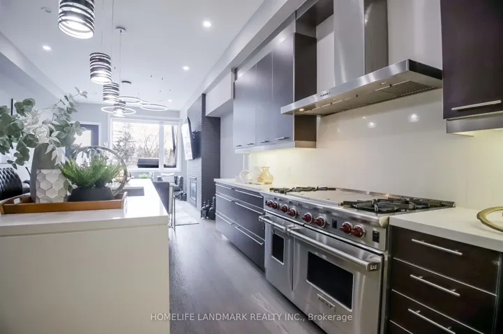 A professionally designed showpiece, this newly renovated 4-storey townhome in coveted Birch Cliff offers an exceptional blend of modern luxury and refined lakeside living. Spanning approximately 2,800 sq. ft. of interior space plus ~850 sq. ft. of private outdoor balconies and terraces, the home is bathed in natural light and defined by soaring 10-ft ceilings, engineered hardwood floors, and a seamless open-concept layout.A private in-home elevator provides effortless access to all levels, delivering both convenience and a true sense of luxury. Two gas-burning fireplaces add warmth and ambiance, enhancing the home’s refined yet inviting atmosphere.Outdoor living reaches new heights with multiple balconies and a spectacular rooftop terrace showcasing panoramic, south-facing views of Lake Ontario and the iconic bluffs-an extraordinary setting for relaxing or entertaining, and an inspiring backdrop from sunrise to sunset.The gourmet kitchen is a true centerpiece, appointed with a professional Wolf range featuring teppanyaki and integrated grill functions, a striking double-door glass Sub-Zero refrigerator, a built-in wine cellar, and a fully integrated coffee system-crafted for the discerning culinary enthusiast.Complete with two underground parking spaces and a private locker, this residence is ideally located just a short stroll to the lake, beaches, and scenic bluffside trails-offering the perfect balance of urban convenience and natural beauty.A rare opportunity to own a turnkey, design-forward home in one of the city’s most sought-after lakeside communities.