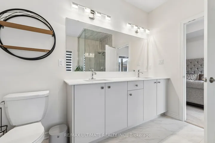 Stunning executive-style detached 4-bedroom home with finished basement in sought-after Whitby. This exquisite residence features an extensive list of upgrades valued at over $150k,including a spacious 4-car driveway with decorative paving stones, upgraded 9-foot entrydoors, custom and programmable exterior mood lighting, and elegant zebra-style blinds-nothing has been spared. The bright, modern kitchen overlooks the great room, perfect for entertaining; it boasts a gas stove, marble countertops, a large extended pantry, and upgraded cabinetry. The primary bedroom is a grand, airy sanctuary with a 10-foot coffered ceiling, abundant natural light, and a luxurious spa-like ensuite with double sinks, floor-to-ceiling frame less glass shower, and a standalone tub. It also features a dreamy walk-in closet with built-in organizers and shelving. Three additional spacious bedrooms filled with natural light, offering comfort and elegance. The finished basement, completed with permits, is ideal for late-night gatherings, a game room, or an in-law suite-perfect for extra income. It includes a beautiful three-piece bath and a well-appointed kitchen, with no expense spared.The backyard extends 100 feet deep, featuring pavers and a lush grassy area-perfect forback yard barbecues and outdoor entertaining. Close to parks, schools, including French immersion, Catholic, public and gifted schools, shopping, transit and amenities.This home isa true show stopper, checking all the boxes with impeccable attention to detail. Bring your most discerning clients home shows 10+++.