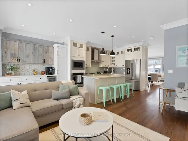 This impeccably renovated 4-bedroom, 5-bathroom family home is an entertainer’s dream, set on a gorgeous tree-lined street and ideally located near top-rated schools, parks, cafes, gyms, and transit, and finished top to bottom with high-end craftsmanship. Featuring two floors of custom-finished hardwood, high ceilings, wainscoting, and plaster crown moulding, the home offers a chef’s kitchen with Caesarstone countertops and backsplash, newer fridge, dishwasher, and microwave, and a walk-out from the family room to a composite deck with lifetime warranty. The thoughtful layout includes second-floor laundry, two skylights, one fireplace with a second roughed-in in the basement, and custom built-ins in the primary bedroom and ensuite, guest bedroom, and living area. Recent upgrades include a renovated primary bathroom (2023), renovated main-floor powder room, new washer and dryer (2024), new AC unit (2024), making this move-in-ready home the perfect blend of luxury, comfort, and family living.
