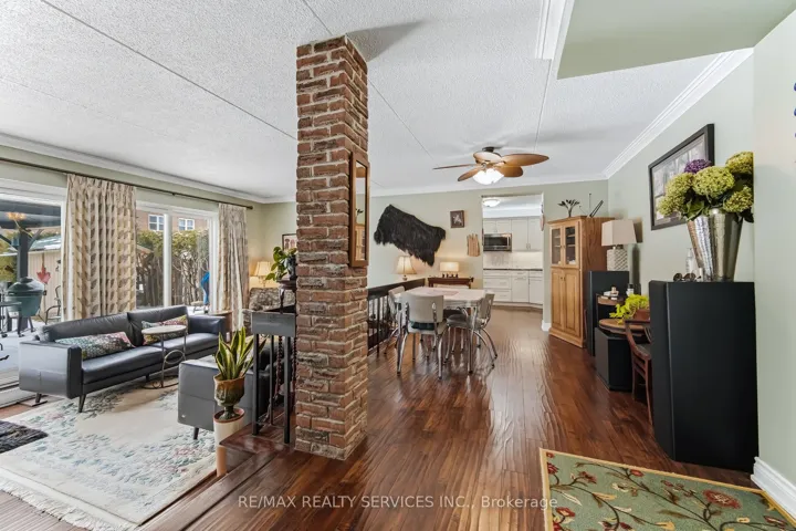 Rarely offered ground level corner unit condo bungalow that truly lives like a private home. This spacious 2 bedroom plus den suite offers approximately 1,274 sq ft with a unique open layout seldom found in condo living. The inviting living space features a sunken two level living room filled with natural light, highlighted by a striking exposed interior brick architectural column that adds warmth and architectural character, along with a custom built-in wall unit that enhances both function and presence. Walk out from the living area to an exceptionally large private backyard deck and garden, a rare offering in condo living that creates a seamless indoor outdoor feel with plenty of space to relax or entertain. The split level living and dining layout provides natural separation while maintaining an open, comfortable flow. Laminate flooring runs throughout, offering a clean carpet free layout that enhances the bungalow feel, while the home has been extensively upgraded with quality finishes and thoughtful improvements throughout. The kitchen features generous cabinetry, ample counter space, stainless steel appliances including a built in oven and microwave, and a stylish stone backsplash. Tucked away for added privacy, the versatile den is ideal for a home office or quiet retreat, while both bedrooms are generously sized with excellent natural light. The bathroom is well appointed with a marble countertop vanity and oversized glass shower, and the convenience of ensuite laundry completes the interior. The expansive outdoor space also includes a private storage shed equipped with electrical power. Ideally located in the heart of downtown Whitby close to shops, parks, trails, and quick access to Hwy 401.