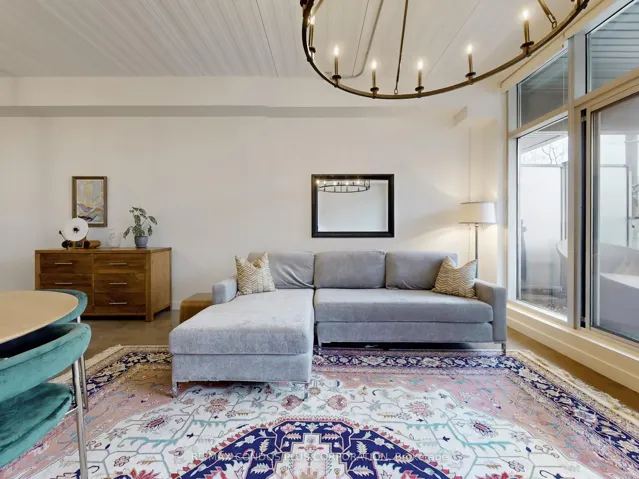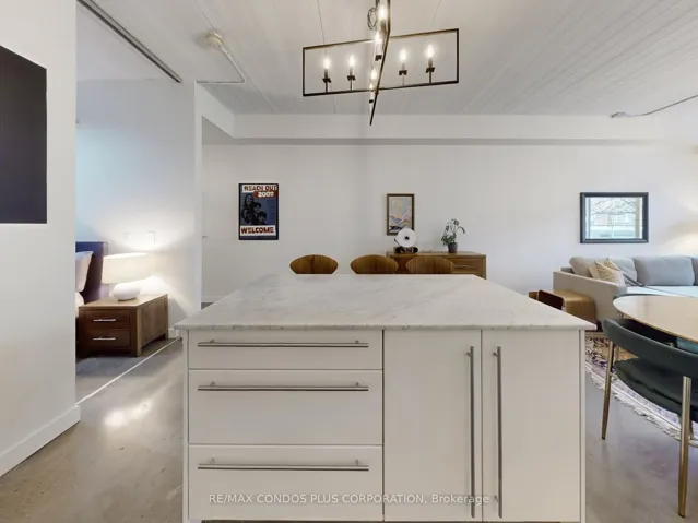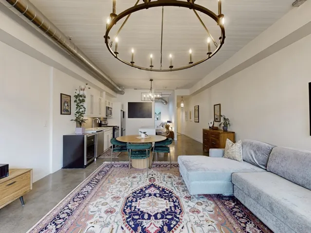 Riverside Lofts! Bright and spacious 1-bedroom+den in Toronto’s desirable Riverdale neighbourhood. Features 1009 sf of interior living space, functional open concept layout ideal for entertaining, & generously sized primary bedroom with huge closet and 4-pc ensuite. Large den perfect for a home office, media room, or 2nd bedroom. Beautifully finished interior with polished concrete floors throughout, soaring 10 ft ceilings, exposed ductwork, & floor-to-ceiling windows. Well-appointed kitchen includes stylish high gloss cabinets, ample storage, quartz counters, stainless steel appliances, undermount lighting, and large centre island. Massive 135 sf terrace with BBQ gas line. Steps to the public transit, Jimmie Simpson Park, and countless restaurants, cafes, shops, and boutiques along Queen St. E. Minutes to the Toronto Waterfront, Tommy Thompson Park, Woodbine Beach, and Martin Goodman Trail.