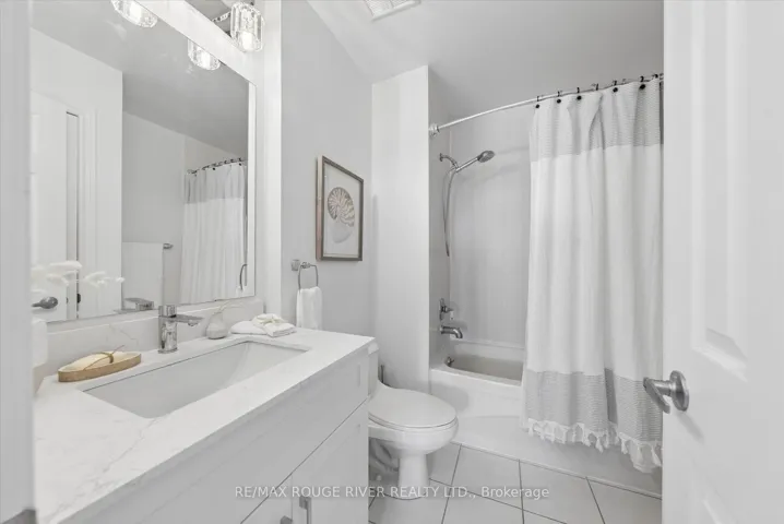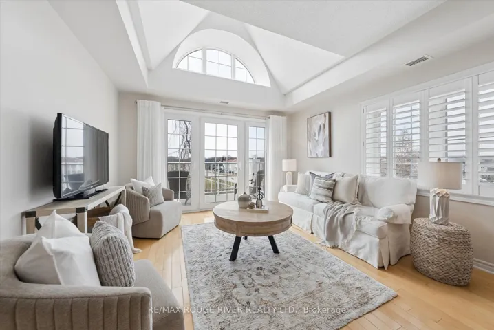 Experience the very best of lakeside living in this stunning corner condo at the highly sought-after Port of Newcastle. Perched on the top floor above the water with no neighbouring building to interrupt the skyline, this west-facing suite offers breathtaking, unobstructed views of Lake Ontario and surrounding parkland-sunsets here are simply extraordinary. At over 900 square feet, this bright and airy corner unit is filled with natural light from multiple exposures and enhanced by soaring vaulted ceilings that create a grand, open feel. Freshly painted in a modern palette with updated lighting, every detail has been thoughtfully curated. Rich maple hardwood floors, California shutters, and refined finishes add warmth and sophistication throughout.The open-concept living and dining area flows seamlessly to a private balcony where lake and park views take centre stage-an ever-changing backdrop through the seasons. The kitchen features granite countertops, an undermount sink, stylish backsplash, and breakfast bar-perfect for morning coffee overlooking the water.The primary bedroom is a true retreat with hardwood floors, a 4-piece ensuite with quartz countertops, his-and-hers closets, and serene lake views. The second bedroom is a standout, complete with a cozy fireplace and beautiful park views-ideal as a guest room, den, or inspiring home office.Rarely offered in condo living, this suite includes a private storage unit and two parking spaces. Ownership also includes two exclusive Gold Memberships to the Admirals Walk Clubhouse, featuring a gym, indoor pool, sauna, steam room, library, tennis courts, and vibrant community programming.Just steps from your door: lakeside parks, marina, and direct access to the Great Lakes Waterfront Trail-offering thousands of kilometres of scenic trails-perfect for an active, maintenance-free lifestyle.