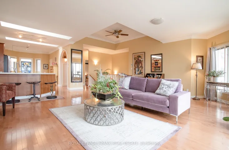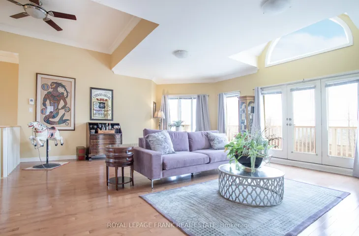 Spectacular and unobstructed lake views just steps from the front door of this beautiful 2865 sqft custom built executive home. Directly across from waterfront walking and biking paths. A bright open concept home featuring skylights, crown mouldings, walkouts to full length balcony, gas fireplace, air conditioning, central vacuum and 3/4 inch maple hardwood floors throughout, entrance to 2 car garage from laundry room which includes pet bath area.