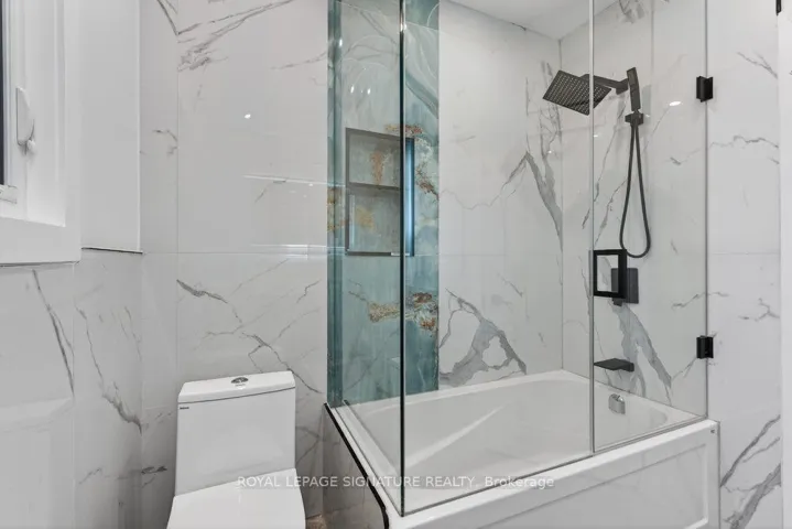 Immaculately Fully Renovated Detached Home on a 30′ Lot in East York With Private Driveway & Modern Finishes! Step into this fully renovated, thoughtfully designed home, where modern elegance meets everyday comfort. Situated on a 30′ lot with a private driveway, this stunning property boasts high-end upgrades and stylish finishes throughout. The open-concept main floor features engineered hardwood flooring, LED lighting, and expansive windows that fill the space with natural light. A beautiful bay window enhances the living and dining area, creating a warm and inviting ambiance. The gourmet kitchen is a chefs dream, showcasing quartz countertops and backsplash, a center island, stainless steel appliances, and modern fixtures. Enjoy casual meals in the cozy breakfast area, surrounded by windows, and a walkout to a large deck and privacy-fenced backyard, perfect for entertaining. Upstairs, the primary bedroom exudes charm with its wall-to-wall custom built-in closets and a picturesque bay window. Two additional bright and spacious bedrooms with large windows and ample closet space, a convenient second-floor laundry, and a luxurious 5-piece bathroom featuring a double vanity, glass-enclosed bathtub, and beautifully tiled walls complete this level. The fully finished lower level offers incredible versatility with its separate entrance, an open-concept layout, a full kitchen with quartz countertops and stainless steel appliances, a spacious recreation/dining area, an additional bedroom, and a 4-piece bathroom ideal for extended family or rental potential. Nestled in a family-friendly East York neighborhood, this home is steps from parks, schools, transit, and all the fantastic amenities the area has to offer. Don’t miss this incredible opportunity to own a beautifully renovated home in a prime location!