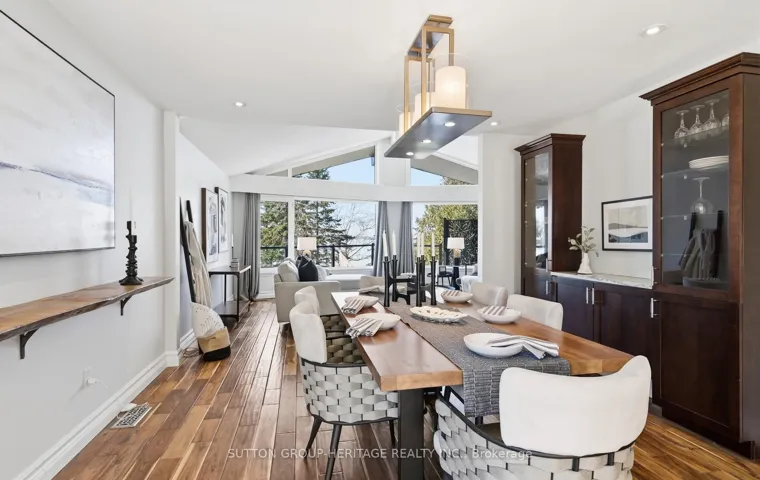 Renovated, improved and lovingly cared for, this property is truly unique. Located on a deep, south facing, lot w/80′ of water frontage. Easy enjoyment of fishing/boating/snowmobiling/ice hockey. The custom compass star marks the heated portion on the driveway. Walk the landscaped entrance to the double front door of timeless design. The living room has wall-to-wall windows overlooking the lake and pool. The walkout to the balcony provides a sheltered spot for your morning coffee. The kitchen is spacious and renovated with high-end appliances & granite counters. Hardwood flrs throughout the main level. The primary bdrm has a 5pc ensuite with large steam shower. Walkout from the main fl family room to the covered BBQ entertainment area which also provides access to the 20×44 loft over the detached garage. The loft is perfect for work space or party room with built-in sound. The comfortable & family friendly walkout bsmt boasts a brick wood-burning fireplace with w/o to inground pool and patio. 5 fireplaces add warmth to this spacious home no matter what the weather. Landscaped lot gently slopes down to the waterfront. Mature trees and cedars make it private. Two heated garages with 4 access doors & room for 5 cars will intrigue any car enthusiast. Truly worth a look as this home shows pride of ownership on all levels. Situated on a quiet dead-end street. Be in before summer to enjoy all this home has to offer! See attached list of improvements.