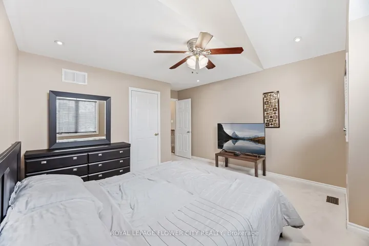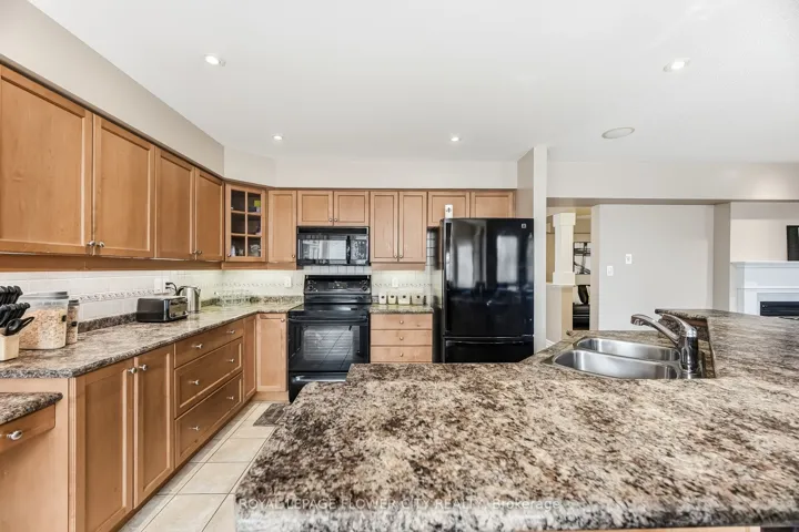 Welcome to this beautifully maintained 4-bedroom, 4-bathroom detached home featuring a double car garage and elegant double door entry. Step into the impressive open-to-above foyer leading to a spacious layout with separate living, dining, and family rooms. The living room showcases a tray ceiling, and a stunning double-sided gas fireplace serves both the living and family rooms. Hardwood flooring flows through the living, dining, and family rooms, complemented by pot lights throughout the main floor and a built-in speaker system for enhanced entertainment.The home features a huge modern kitchen with plenty of tall cabinets, a chef’s desk, central island with breakfast bar, and a bright breakfast area. The primary bedroom offers a luxurious 5-piece ensuite with Jacuzzi tub and separate standing shower. Three additional generously sized bedrooms and a 4-piece main bath complete the second floor.Recent updates include new carpet on the second floor (2022) and a new A/C (2024). Electrical upgrades include a 200 Amp panel with an additional 60 Amp pony panel.The finished basement includes a recreation room, kitchen, and full bathroom-ideal for extended family or additional living space.Enjoy the spacious backyard with a concrete patio and garden shed. Hot water tank is a rental.
