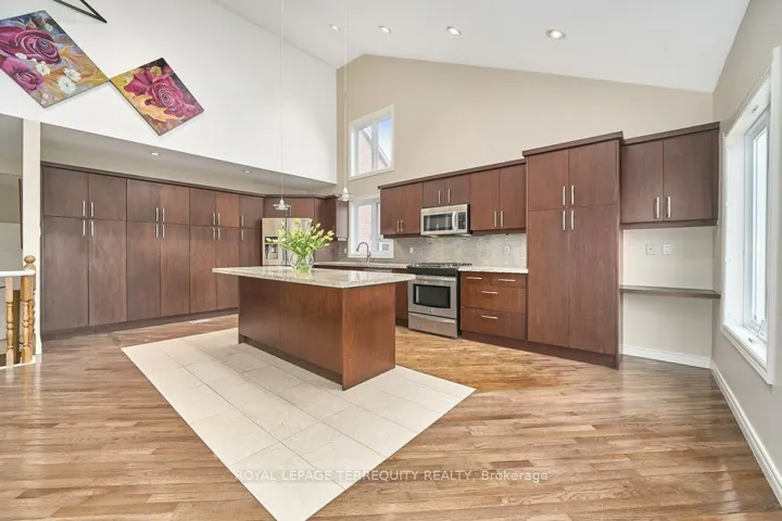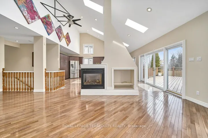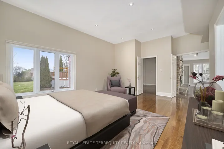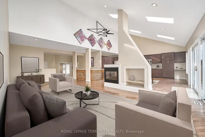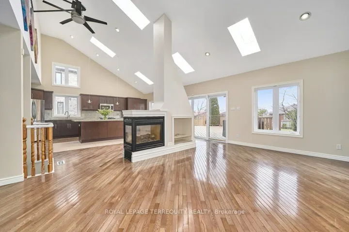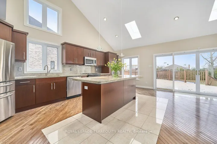 Prestigious Woodlands Pickering neighbourhood minutes to 401/Toronto border, GO Train, 407, schools, and shopping. Fantastic, larger, custom-built stone and brick bungalow approximately 2976 sf, nestled on a 120′ x 200′ mature level lot. Ample parking for approximately ten cars in the courtyard driveway. Oversized triple garage (double width & one tandem). This oversized bungalow offers a unique open-concept main floor, perfect for a large family to entertain family and friends. The open concept kitchen features granite countertops, an island, a wall-to-wall pantry, stainless steel appliances, numerous skylights, and a spacious dining area with a walkout to an oversized composite deck. A gas fireplace separates the kitchen and great room. Step down to the spacious family room, featuring a gas fireplace, hardwood floors, and California shutters for added privacy. The Primary Bedroom is a unique space featuring a 5-piece custom en-suite bath and a private staircase to the lower-level walk-in custom dressing room, complete with built-in cabinets. This dressing room also provides access to an office/den area, offering a private workspace at home with a large window overlooking the yard. Off the Primary bedroom is the nursery, which can be used to keep the little ones close, serve as a main-floor den, or be customized into a walk-in dressing room. There are two additional generously sized bedrooms on the main floor, one of which features a 5-piece custom semi-ensuite. Also, for convenience, there is a main-floor 2-pc designer powder room. The basement offers access from the front entry hall to the recreation room and an additional bedroom, both with above-grade windows, and a three-piece custom bath. There is ample unfinished storage space in the basement area. The sprinklers are located in the front and back yards and are on timers. The oversized backyard offers multiple options for family enjoyment!