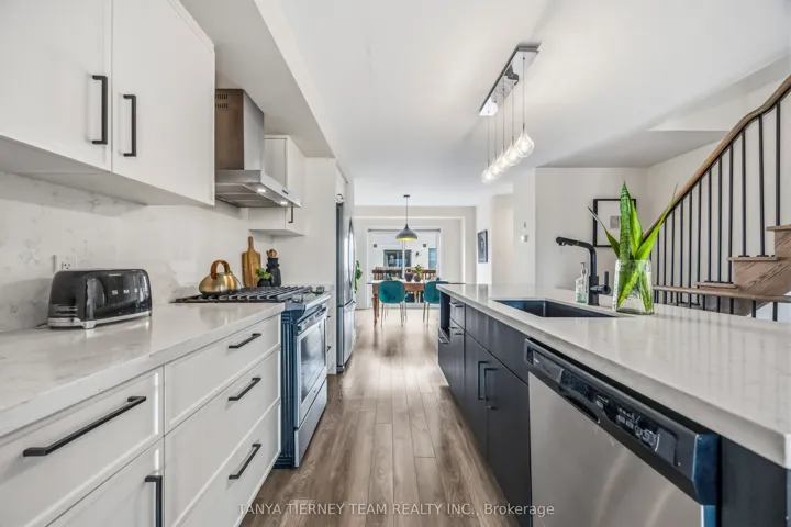 Stunning 3-bedroom, 3-bath Triumph built condo townhouse in the highly sought after Pringle Creek community, ideally located steps to parks, top rated schools, transit & all major amenities. Low monthly condo fees offer convenient, low-maintenance living – perfect for first time buyers, professional couples or downsizers. Bright, sun-filled open concept main floor featuring large windows, laminate flooring & elegant hardwood staircase with wrought iron spindles. Spacious living room seamlessly flows into the beautifully updated designer kitchen (2021), complete with quartz countertops, large centre island with breakfast bar, pantry & stainless steel appliances including gas stove. The family-sized dining area offers a sliding glass walk-out to a private balcony overlooking the backyard – ideal for everyday living & entertaining. Upper level features a convenient laundry closet & 3 generously sized bedrooms, including a spacious primary retreat with his & hers double closets & a 4-piece ensuite featuring double vanity & glass shower. Additional living space in the finished lower level rec room with walk-out to the yard & direct garage access. Unspoiled basement provides excellent storage space & features large windows, offering potential for future finishing!