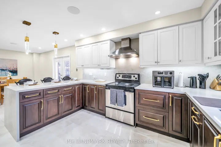 Beautifully renovated detached home in sought-after Williamsburg, Whitby, situated on a premium corner lot with no sidewalk and parking for up to 6 vehicles. Offering approx. 2,586 sq ft plus a fully finished basement, this home features 4+2 bedrooms, a den, and 4 bathrooms. Bright, functional main floor with separate living and family rooms, large windows, and an upgraded eat-in kitchen with quartz waterfall breakfast bar, chimney-style range hood, custom lighting, custom cabinetry and stainless steel appliances. Built-in ceiling speakers in the kitchen, breakfast area, and dining room are hard-wired for best sound quality and connected to the media area for a seamless audio experience throughout the home. Hardwood flooring, smooth ceilings, pot lights, motorized blinds, and smart lighting features throughout. Upper level includes a spacious primary bedroom with walk-in closet and ensuite, along with generously sized bedrooms and refreshed bathrooms. Finished basement offers 2 bedrooms, den, 3-pc bath, media area with built-in speakers, and electric fireplace. Ideal for extended family or in-law potential. Exterior features include a new deck, fully fenced backyard, natural gas BBQ hookup, and private outdoor space perfect for entertaining. Located close to top-rated schools, parks, and amenities in one of Whitby’s most desirable communities.