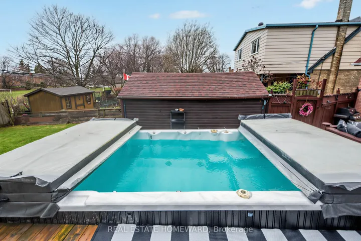 Lovely Detached Home w/ 3 + 1 bdrms, 2 bathrms, long private driveway with Detached Garage, spacious fenced backyard with walk-out from main floor bdrm/office to a large wooden deck w/ built-in lighting and “swim spa” pool/jacuzzi tub, perfect for those summer nights to enjoy! Updated flooring in basement, newer shingled roof, eaves, downspouts and HVAC system + great location just mins to schools, several parks, grocery stores, public transit, Eglinton LRT and all kinds of amenities nearby! ***Lovely Park directly behind property, great for added privacy (no neighbours behind) and enjoying time outdoors!***