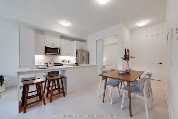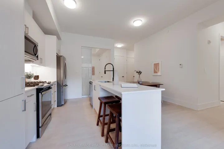 Welcome to the highly admired Sunday School Lofts- attractive heritage façade meets modern construction in a boutique building. This expertly managed walk-up is perfectly positioned in a vibrant yet residential Danforth neighbourhood with a Walk Score of 93-just steps to shops, cafés, restaurants, parks, schools, gyms, the library, and the Donlands subway station entrance across the street! Suite 101 is a spacious 3-bedroom, 2-bathroom featuring a great floor plan ideal for a variety of buyers with a thoughtful split-bedroom layout perfect for young families or down-sizers alike. A spacious separate foyer welcomes you multiple large closets and ample space for additional storage or seating. The open-concept living space with soaring ceilings and well-defined areas for cooking, dining, and relaxing and awash with natural light. The chef’s kitchen is designed for entertaining, complete with full-size stainless steel appliances, a gas stove, abundant storage and prep space, and a large island with integrated breakfast bar and dishwasher, tall panty and pot drawers. The generous living room features floor-to-ceiling windows and double sliding doors that open to a private, high-fenced 204 sq ft terrace-an urban oasis with both covered and sun-filled areas, with gas BBQ hookup and electricity. The beautifully landscaped perennial gardens span the length of the unit providing private green views from multiple vantage points. The king-sized primary bedroom offers three double closets and a 3-piece ensuite, along with a large window overlooking the lush patio. Two additional queen-sized bedrooms feature ample closet space, while the 4-piece family bathroom includes a deep soaker tub with a shower and large-format tile surround. Rarely offered in a low-rise boutique building, this unique home blends character, functionality, and modern comfort in one of the city’s most sought-after locations.