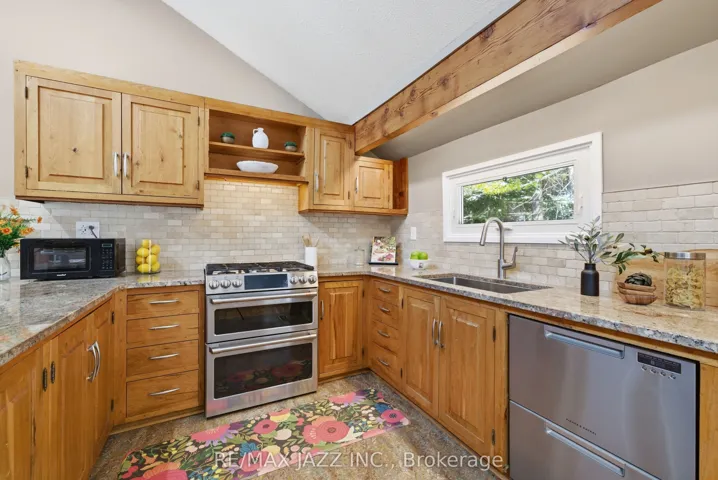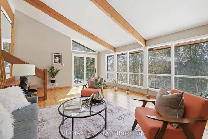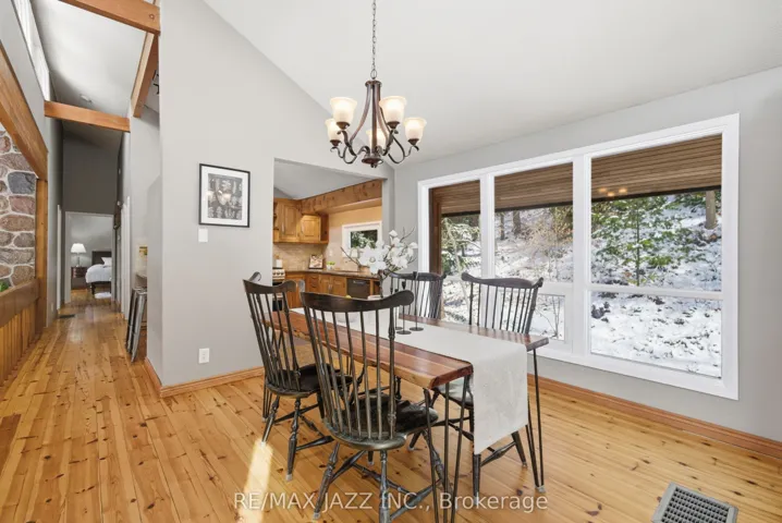 Situated on 40 private acres, this sun-filled home overlooks two beautiful spring-fed ponds and offers the perfect blend of privacy, nature, and functionality. Vaulted ceilings and red pine floors run throughout the main living space, while the updated kitchen overlooks a stunning sunken living room anchored by a wood beams, a stone wall and a wood-burning fireplace. A walk in pantry offers additional storage. The home features three spacious bedrooms, including a primary retreat with vaulted ceilings and a walkout to a private balcony – the perfect place to enjoy peaceful views of the property. The lower level adds incredible versatility and a resort setting with exposed brick, timber beams, an electric fireplace, and a dry sauna with soaker tub. Two separate driveways provide convenient access – one to the main level and another to the lower living area. A standout feature of the property is the separate 40 x 60 ft shop with 200amp service, a drilled well, kitchenette and its own private driveway and separate address – perfect for hobbyists, contractors, or anyone looking for dedicated workspace. Surrounded by mature trees and natural beauty, this stunning property is a true private oasis – ideal for those seeking space, tranquility, and a shop-ready lifestyle. This home is also on the managed forestry program offering reduced property taxes!