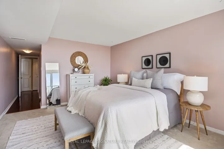 Lakeside living, redefined! Welcome to The Breakers! This rarely offered, bright and spacious south facing oversize 1 bedroom suite (approximately 1100 sq ft) offers breathtaking views of Lake Ontario! Enjoy your morning coffee or unwind in the evening on the expansive L-shaped terrace (approx 140sqft) complete with an additional extension off the primary bedroom.Surrounded by mature trees and offering no visible neighbouring balconies, this outdoor space delivers exceptional privacy and tranquility while framing stunning lake views! This beautifully maintained suite offers a well designed open concept layout with quality laminate flooring, a bright galley kitchen with space for a breakfast table. The primary bedroom features a walk-through closet with semi-ensuite access along with ample in-suite storage with built-in organizers throughout. Enjoy the convenience of BBQs permitted, underground parking & 24hr security. Residents have access to amenities including an indoor pool, sauna, hot tub, gym, meeting room, library/games room & more! Maint. fee covers water, high speed internet & premium cable. Steps to the waterfront, trails, park right at your doorstep! Minutes to groceries, restaurants, shopping, transit, Ajax Go, & hospital. Do not miss this rare opportunity to enjoy spacious, private living with a spectacular Lake view in one of the area’s most sought-after buildings! **See Virtual Tour for Video walk through of the unit and surrounding area!***