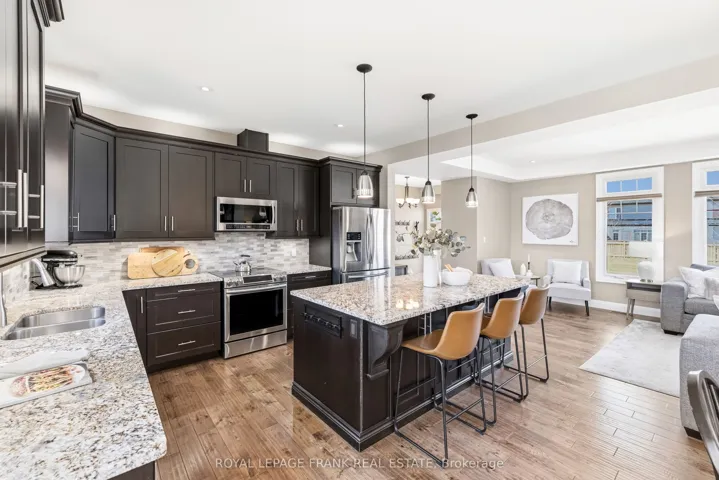 Set on a huge lot in one of Port Perry’s most convenient family-friendly locations, this stunning home offers exceptional space, quality finishes, and thoughtful upgrades throughout. Featuring hardwood floors throughout, a grand front entrance with a custom floating staircase, and a bright open-concept main level with pot lights, built-in dining cabinetry, and a striking gas fireplace, every detail is designed for comfort and style. The chef-inspired kitchen features a large island with storage and beverage fridge, stainless steel appliances, and granite countertops, with matching granite in all bathrooms. Walk out from the dining area to a private back deck overlooking the large fenced backyard, professionally landscaped with 11 new trees and a shed with hydro. Upstairs offers 3 oversized bedrooms plus a huge primary suite with his-and-hers walk-in closets and a luxurious 5-piece ensuite with double vanity, tub, glass shower, and rainfall fixture. A large linen closet and abundant storage add practicality. The main floor also includes a dedicated office and laundry room with sink, window, and garage access, creating future separate basement entrance potential for rental income or multi-generational living. The garage includes a heater, side door, auto opener, and ample shelving/storage. The open-concept basement is framed, insulated, filled with large above-grade windows, and includes a rough-in for a 3-piece bath. Additional highlights include Hunter Douglas retractable shades, central vacuum, Google smart home integration (lights, doors, garage door, thermostat), full security system with 5 cameras, 200-amp service plus separate 60-amp garage service, EV charger wiring, water softener and dechlorination system, parking for 8 vehicles, and a private paved fenced side yard with double gate-ideal for kids, trailer, or boat storage. Walking distance to elementary schools, Port Perry High School, parks, hospital, downtown, restaurants, and waterfront.