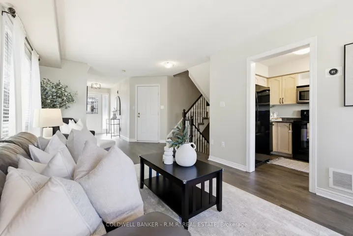 Welcome to Brownstone Crescent – this beautifully maintained end-unit townhome boasts what others can’t. With nearly 1,400 sq ft above grade, a 4th bathroom, home-access to the built-in garage, plus a fully finished basement. Conveniently located on a quiet, family-friendly neighbourhood in Courtice. The main floor showcases newly re-finished hardwood floors, plenty of windows, creating a bright and welcoming atmosphere and a rear walk-out to the private backyard. Upon entering the foyer you’ll find a closet, a 2-pc bathroom, and the convenience of direct access to the 1-car garage. Enjoy open-concept main floor with large windows offers natural light in the family room and dining rooms, making it ideal for entertaining. The eat-in kitchen features Whirlpool and Bosch appliances, hardwood flooring, a breakfast bar, and a bay window shining even more natural light into the space. The second storey provides three generously sized bedrooms, along with two full 4-piece bathrooms. The primary bedroom includes a double-wide closet and private 4-pc ensuite, while the additional 2 bedrooms are perfect for children, guests, or a home office. The professionally finished basement adds valuable living space with a cozy den complete with gas fireplace, a second 2-piece bathroom, and a dedicated laundry/utility area- all ideal for convenience and relaxation, working from home or hosting guests. This home is perfectly positioned close to highly regarded schools, everyday shopping amenities, and excellent commuter access. Enjoy nearby green spaces including Glenabbey and Stuart Parks, with the Courtice Community Complex just minutes away. Commuters will appreciate the quick access to Highways 401 and 407, as well as proximity to the Oshawa GO Station. This move-in-ready end unit offers space, comfort, and an unbeatable location for families and professionals alike.