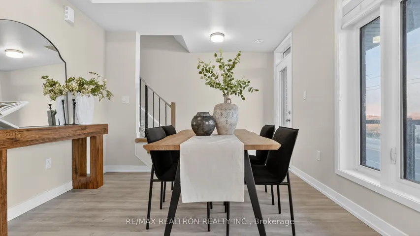 Modern, stylish, and move-in ready, this 2021-built townhome in desirable Duffin Heights offers low-maintenance living with quality finishes throughout. Ideal for first-time buyers or growing families, the home features laminate flooring, two parking spaces (private driveway and garage), and direct garage access. The bright, open-concept main floor is filled with natural light from large windows and features high ceilings, creating a spacious and inviting atmosphere. The dining area walks out to a private terrace, perfect for morning coffee or relaxing outdoors. The primary bedroom includes vaulted ceilings, a walk-in closet, and a private ensuite. Conveniently located close to schools, dining, shopping, Tim Hortons, and scenic trails. Move-in ready and a great opportunity in a growing community.