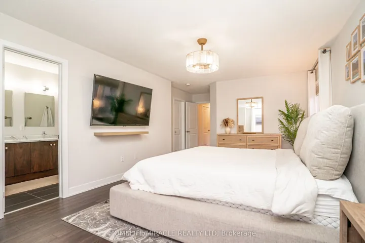 Welcome to this stunning, modern end-unit Condo Townhouse a true showpiece offering over 2,250 sf of luxurious open concept living space, with more than $120K in premium upgrades throughout. This exceptional 2 Story home features 3 spacious bedrooms, a versatile media/entertainment room and a beautifully finished in-law suite complete with its own Kitchen, Bedroom, Washroom, Living with Dining areas and a private laundry ideal for extended family or excellent income potential.The main level showcases gleaming laminate flooring, a chef inspired Kitchen with high end Stainless Steel appliances, elegant backsplash and a custom island perfect for entertaining. Large windows fill the space with lots of natural light, complemented by pot lights and an elegant and stylish electric fireplace.Walk out to a spectacular two-tier deck perfect for outdoor entertaining and relaxing.Upstairs you’ll find three generously sized bedrooms, including a luxurious primary suite with a spa-like ensuite. A Flexible media room offers the ideal space for a home office or additional lounge. Enjoy the convenience of second floor laundry.This beautiful corner unit is located in a highly desirable neighborhood and features smooth ceilings throughout main floor, with convenient visitor parking right at your doorstep. Ideally situated close to Highways 401, 407and 412 as well as the Go Station, shopping, schools, public transit, and scenic trails offering both comfort and convenience with everything you need just minute away.